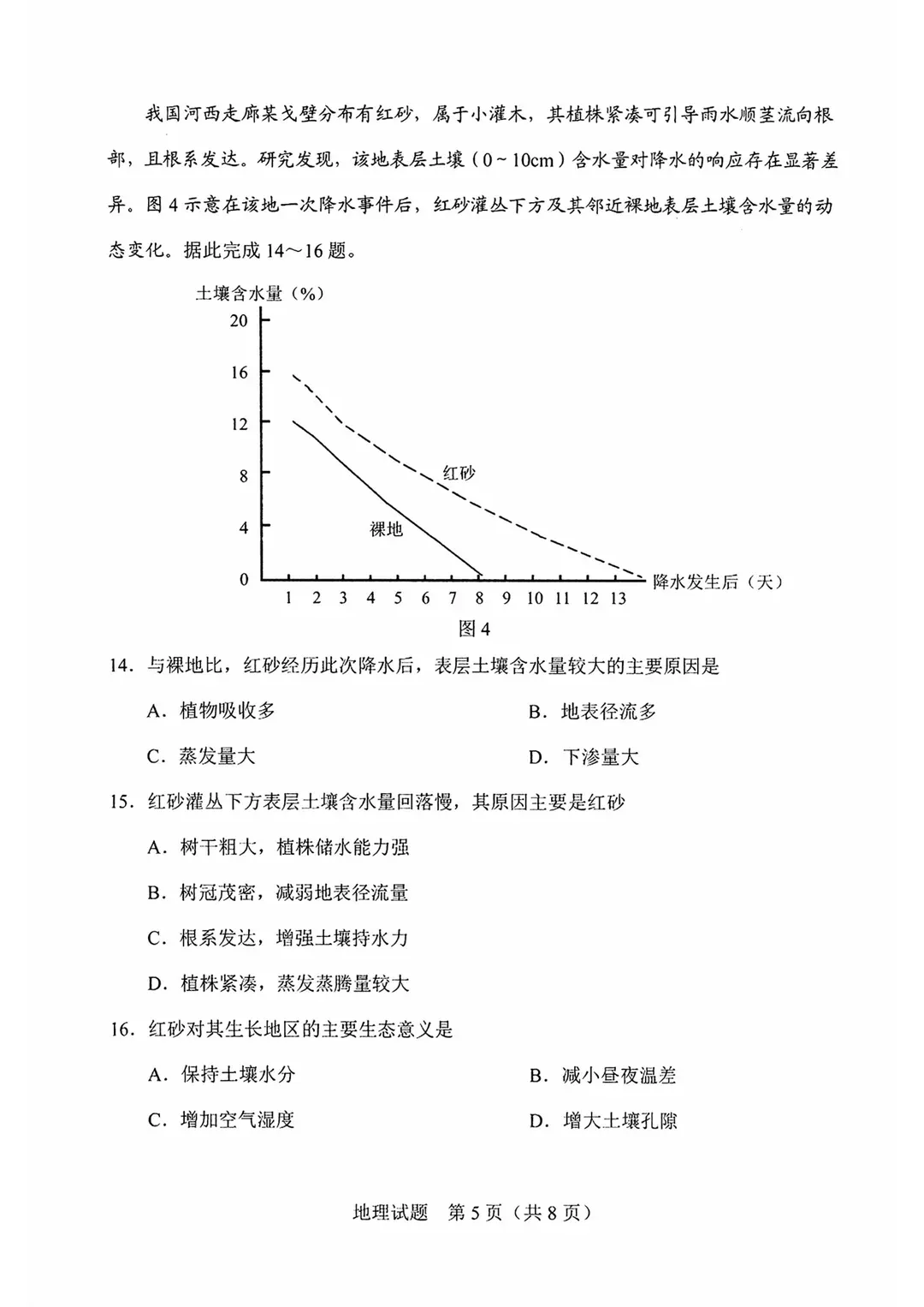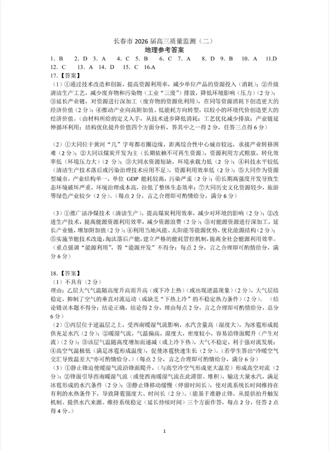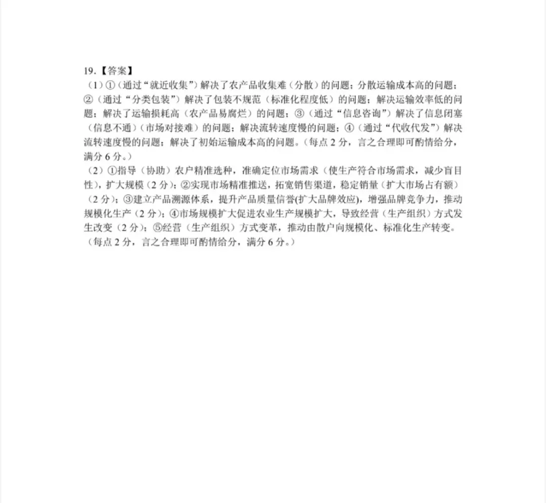 地理试题与官方参考答案