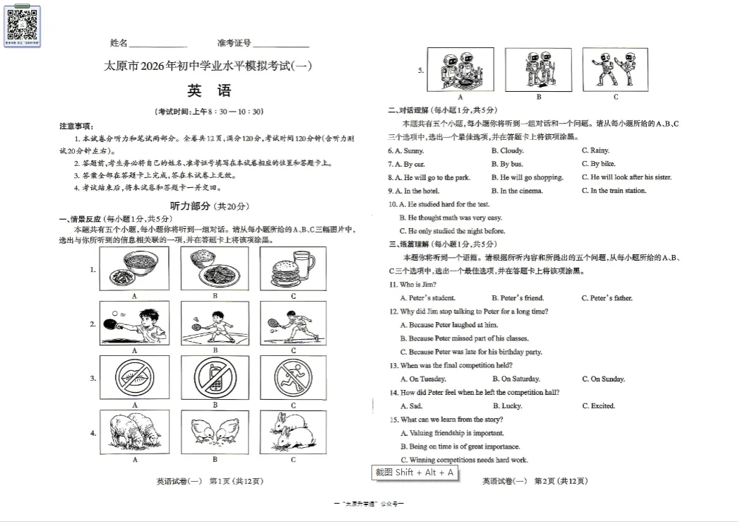 太原初三一模