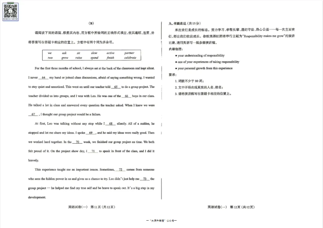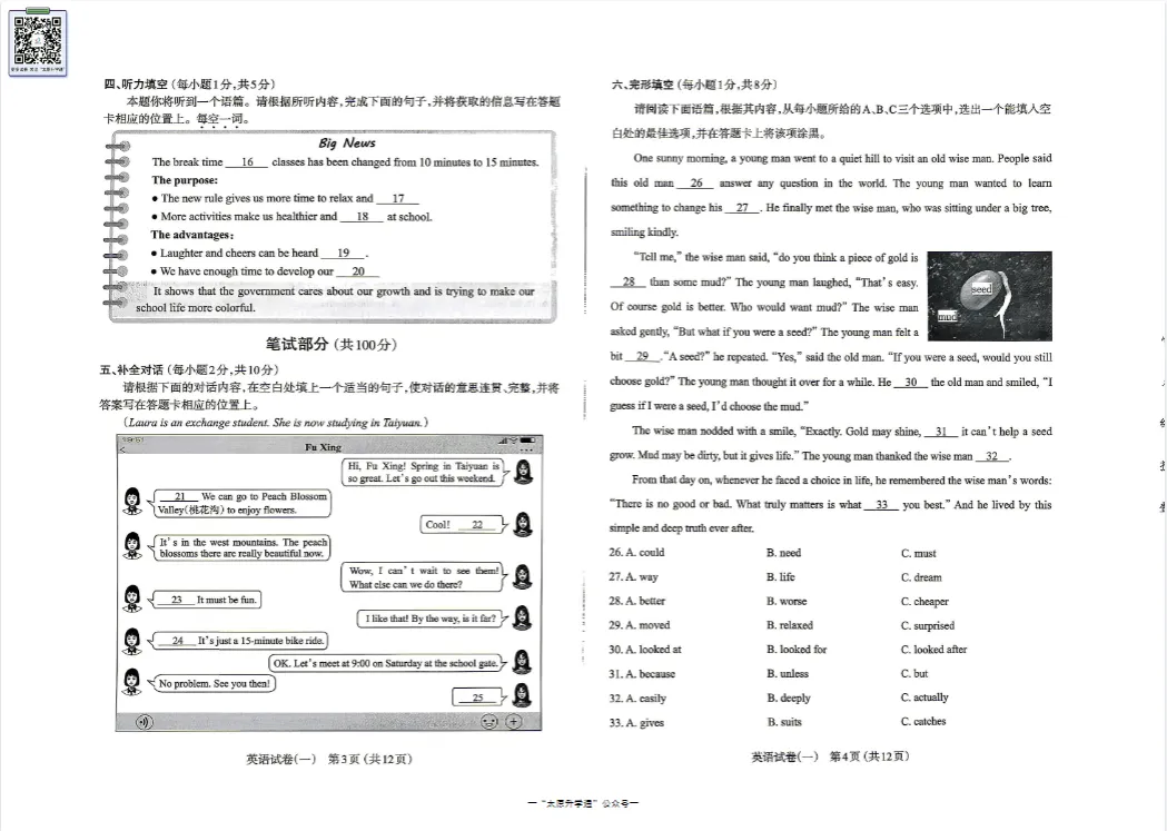 ※公众号回复“一模”获取试卷下载链接