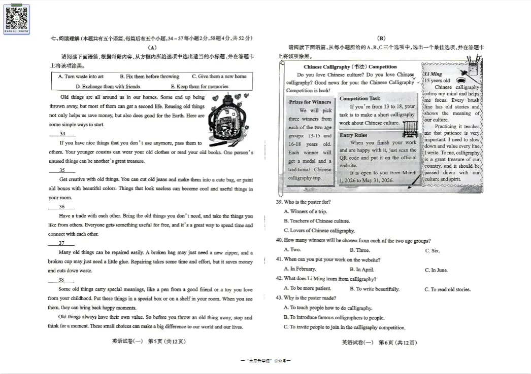 英语试卷展示
