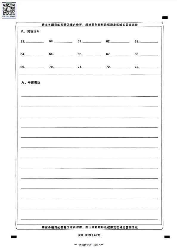 英语答题卡展示