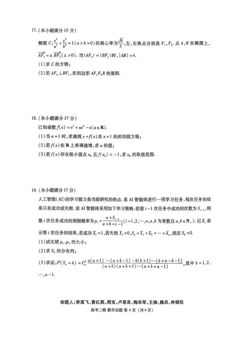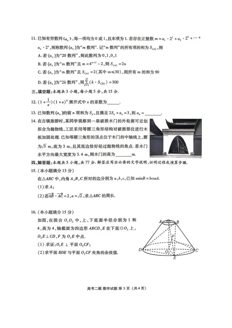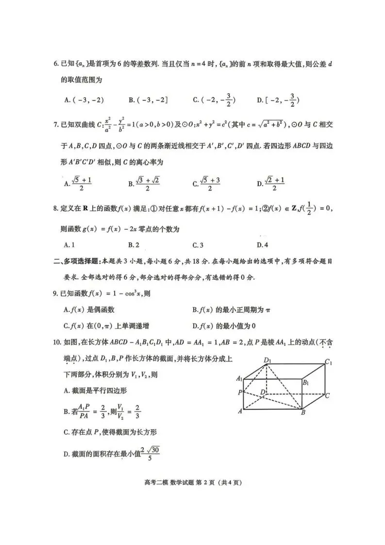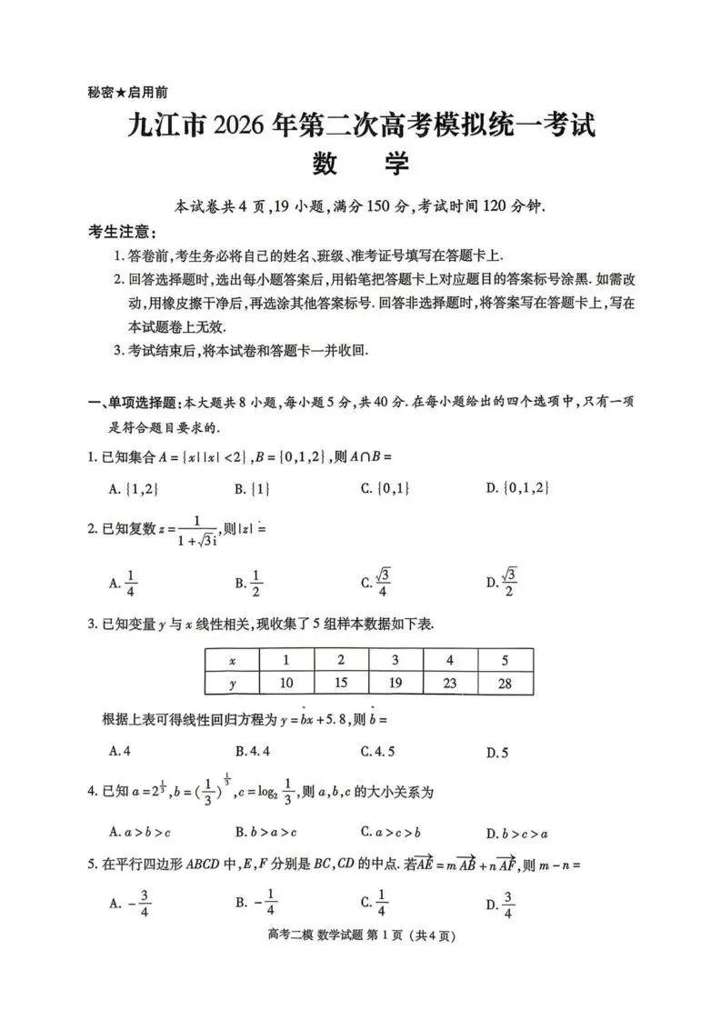 【高一、高二、高三最新月考试卷】2026届江西九江二模数学+答案