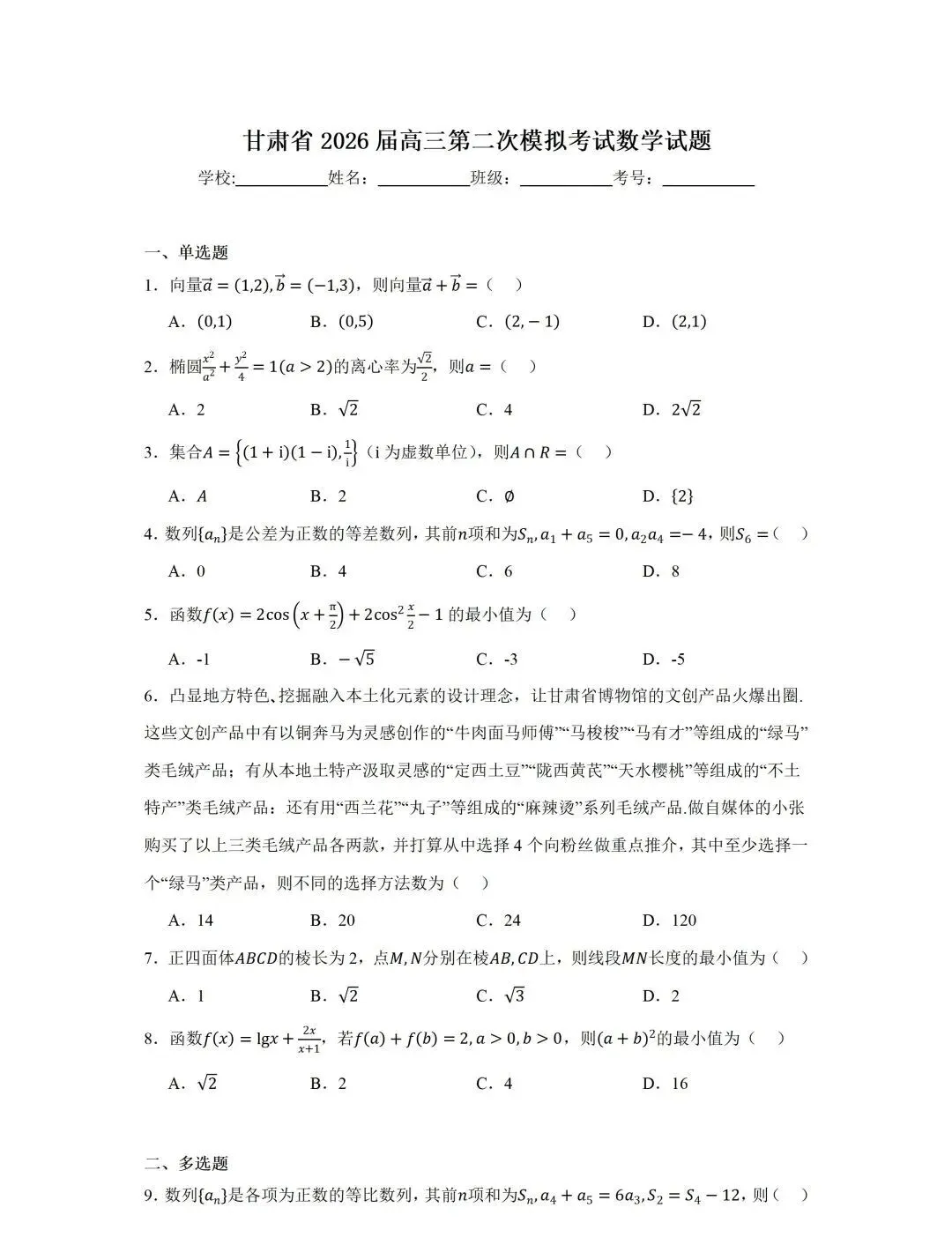 高中试卷|2026上海黄浦 高三二模语文试卷及答案(word版,格式调好,免费领取)