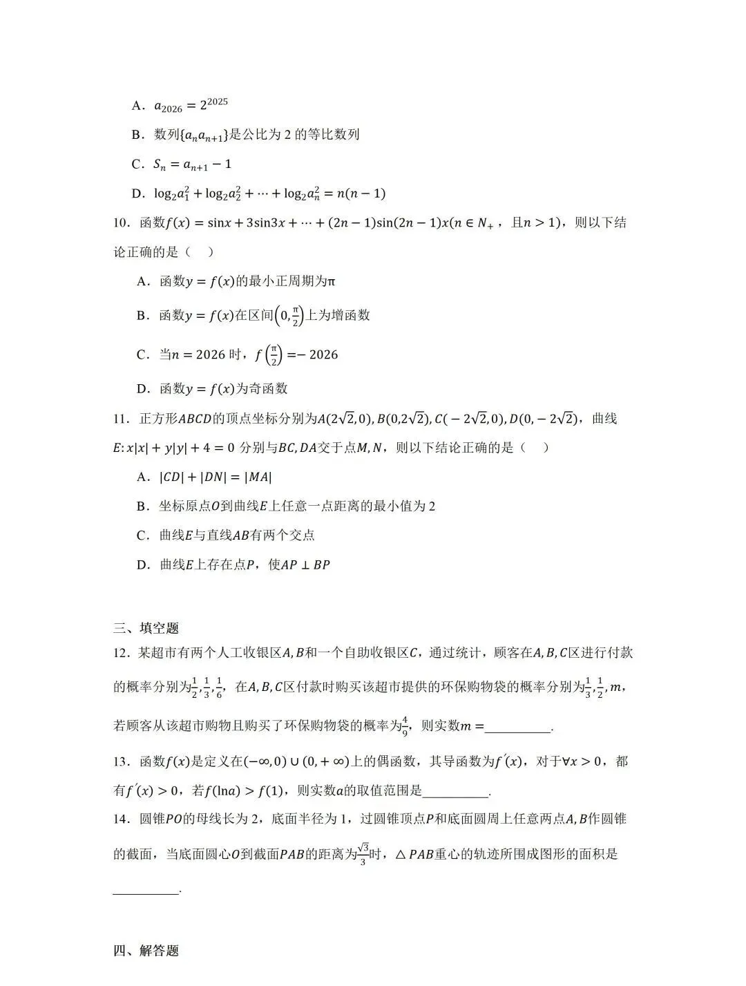 【高中数学试卷】重庆巴蜀中学校2025-2026学年高三下学期周练6数学+答案