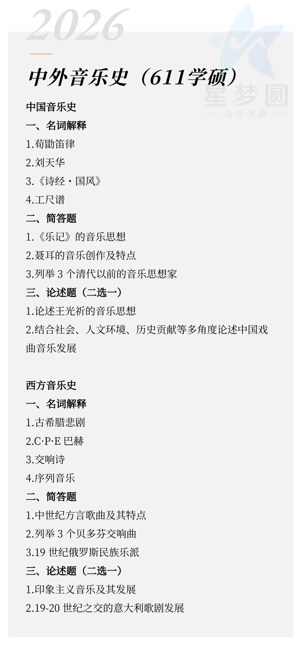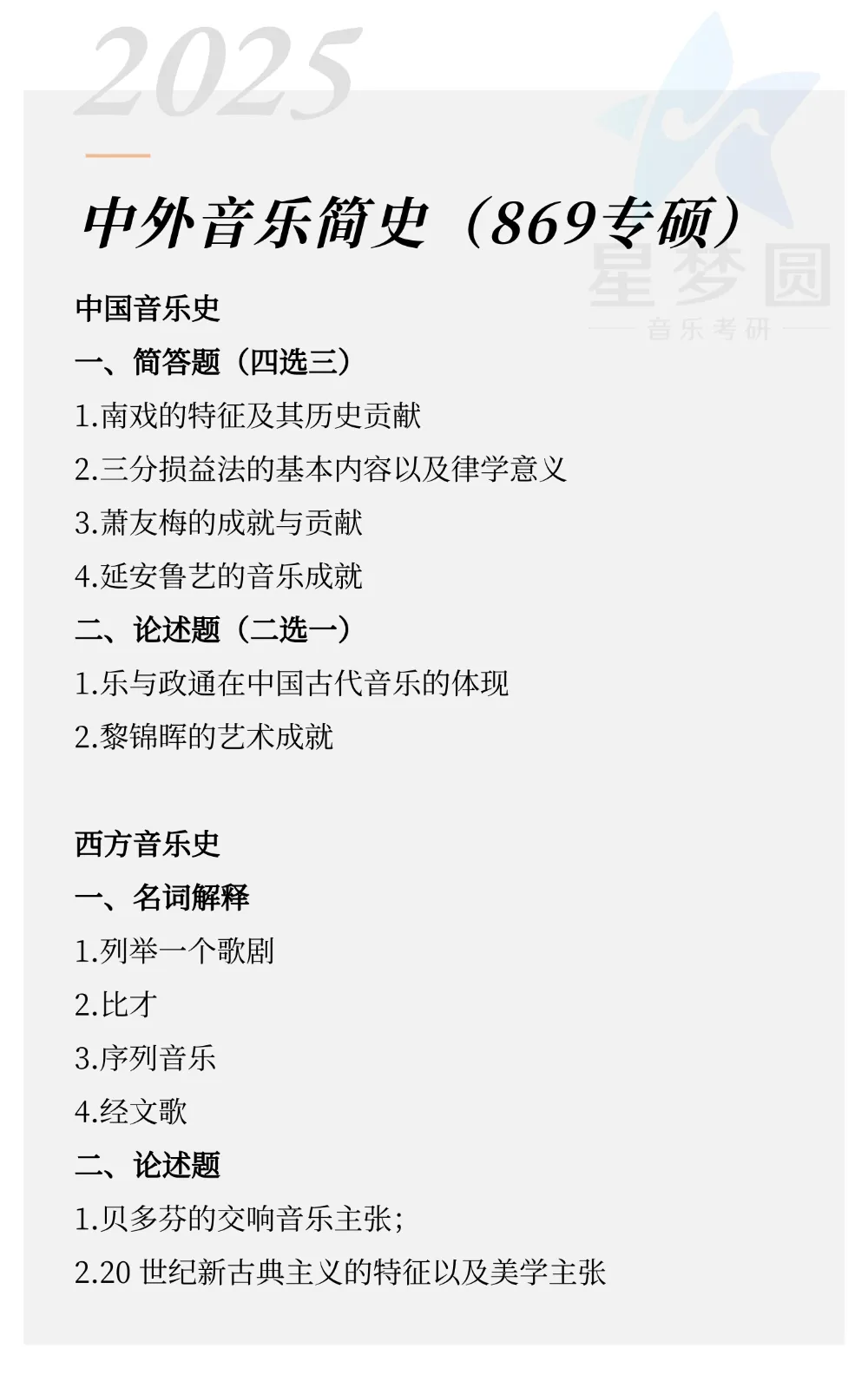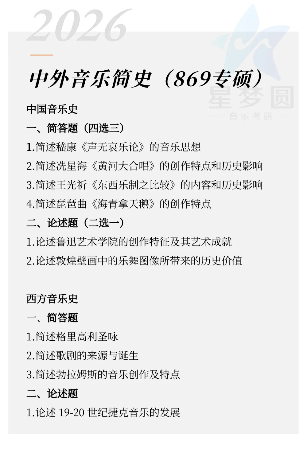 >音乐考研|华南师范大学中西音乐史考研真题(2024-2026)