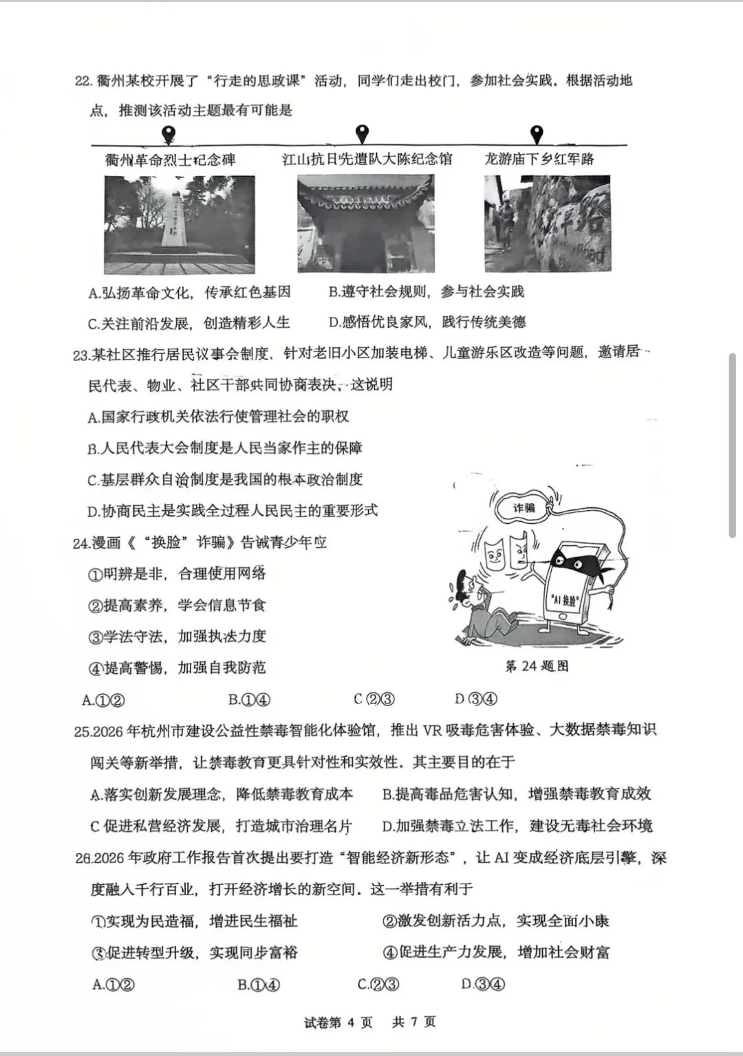 2025北京东城初二上册期末道德与法治试卷(有答案)【可下载】