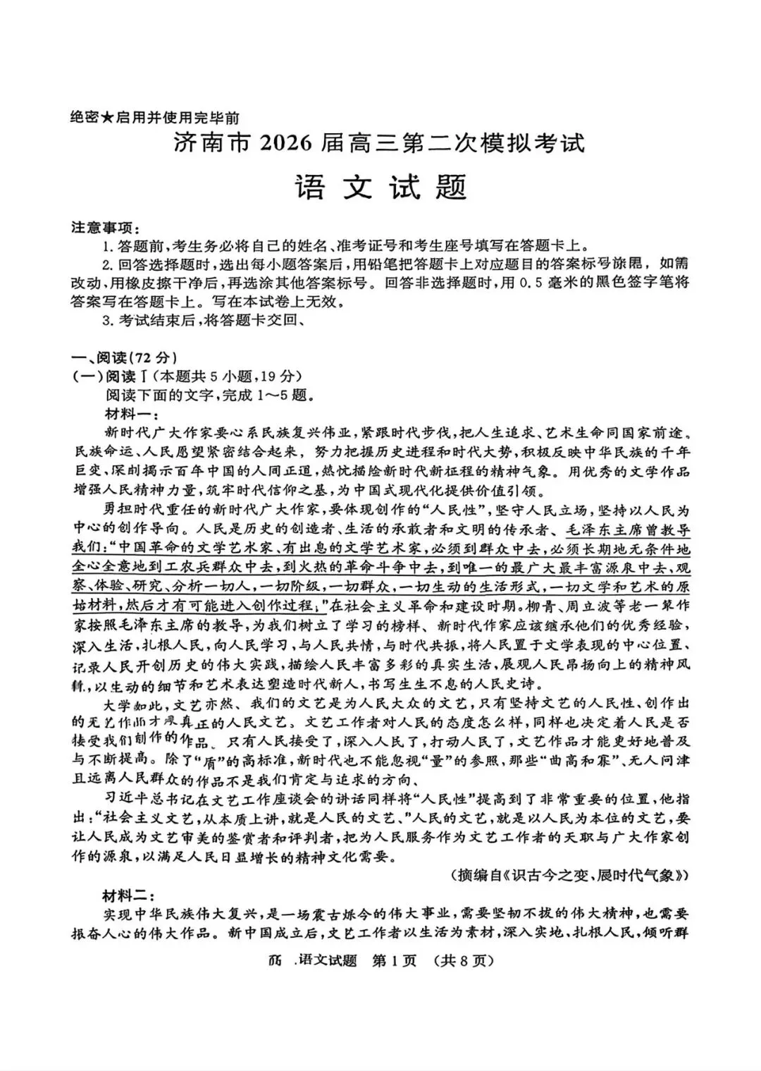 考试名称:济南二模济南市2026届高三第二次模拟考试
