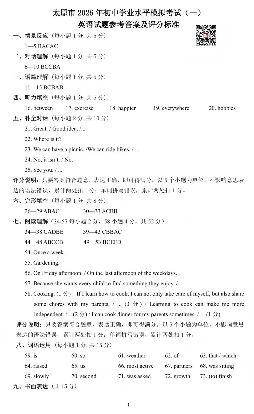 【试卷+答案】运城二模运城市2026年高考考前适应性测试全科汇总!