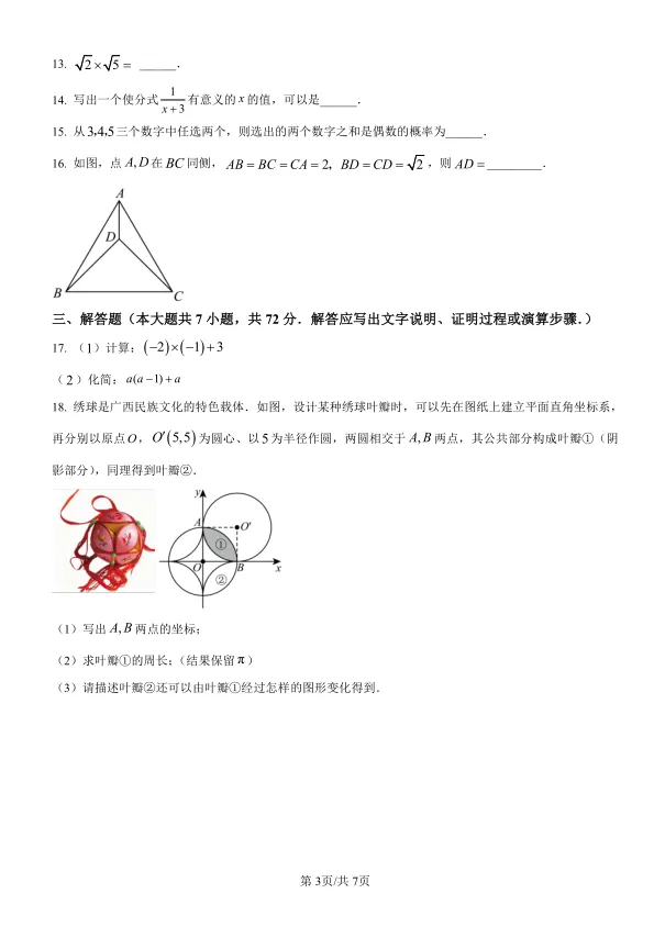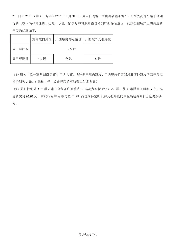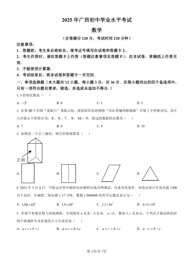 随着中考日益临近,如何高效利用最后的时间进行冲刺复习,成为每一位初三学子关注的焦点。在众多复习资料中,真题和高质量模拟题的价值不言而喻。今天,我们要特别向贵州的考生们推荐一份极具参考价值的试卷——2025年广西中考数学试卷。为什么推荐它?让我们一探究竟。