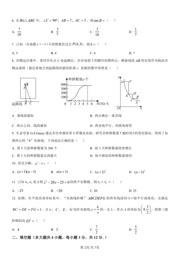 第8题的跳远成绩测量(垂线段最短)、第9题的种群增长曲线(函数图象分析)、第18题的绣球设计(圆与坐标系)、第21题的高速费优惠(分段计费问题)……这些题目将数学知识与生活实际紧密联系,既考查了数学建模能力,又让考生感受到数学的实用性。贵州考生在练习时,可以重点关注这类题目的审题和分析方法。