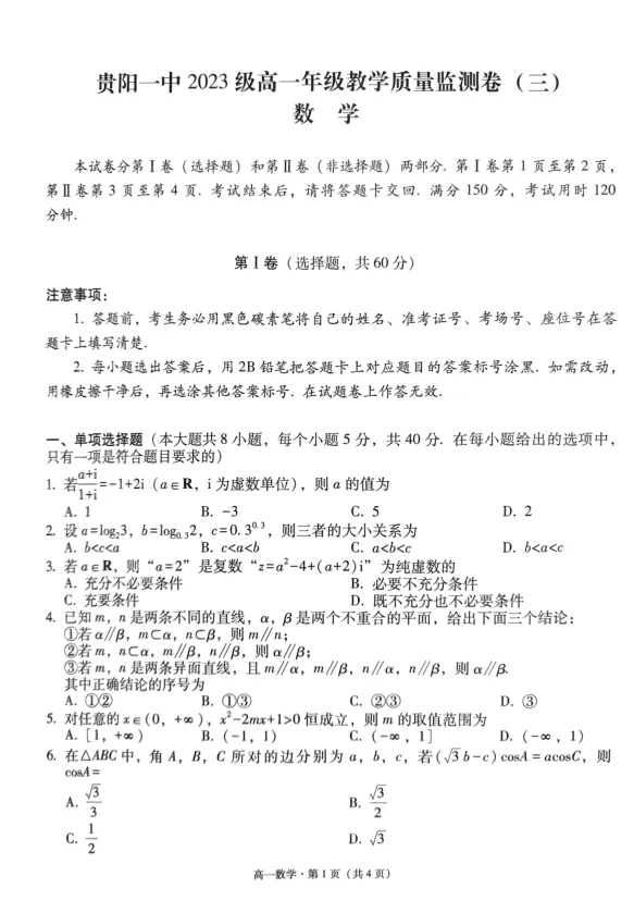 对于高一学生来说,数学是一门既重要又容易拉开差距的学科。而月考,正是检验学习成果、查漏补缺的好机会。最近,我们拿到了2026年贵州省贵阳一中高一年级月考数学试卷,认真分析之后,我们想说:这份试卷,值得每一位高一学生认真做一遍。
