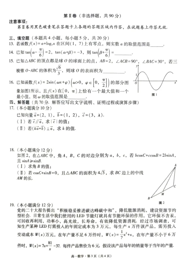 试卷中多次出现数形结合、分类讨论、转化与化归、函数与方程思想等数学核心思想。例如:第5题恒成立问题,考查二次函数图像与判别式;第10题绝对值函数,考查对称性与单调性;第11题向量共线、三角形解的个数、三角形形状判断,综合性强;第20题三角函数的图像与解三角形结合,考查综合应用能力。