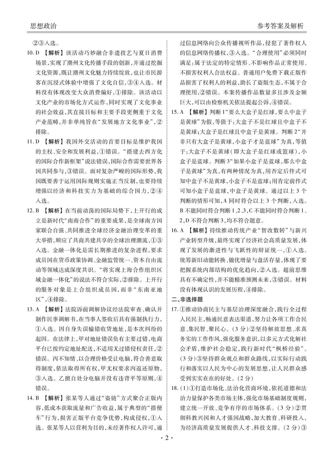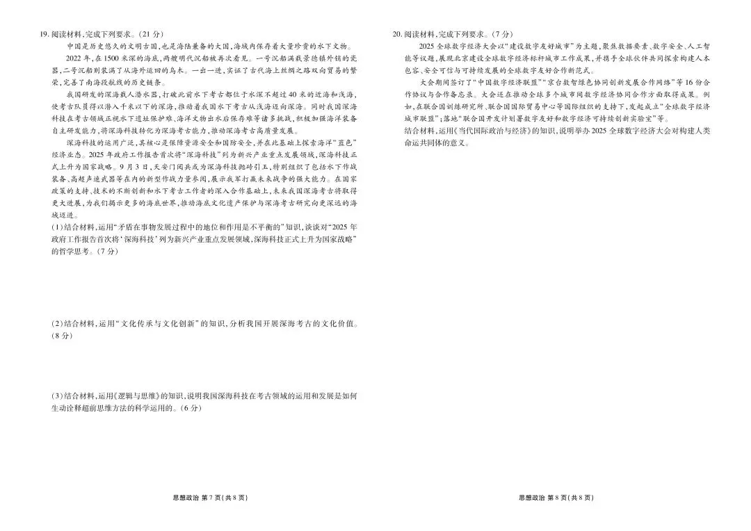 >【试卷】2026年高三3月份学情诊断政治试卷