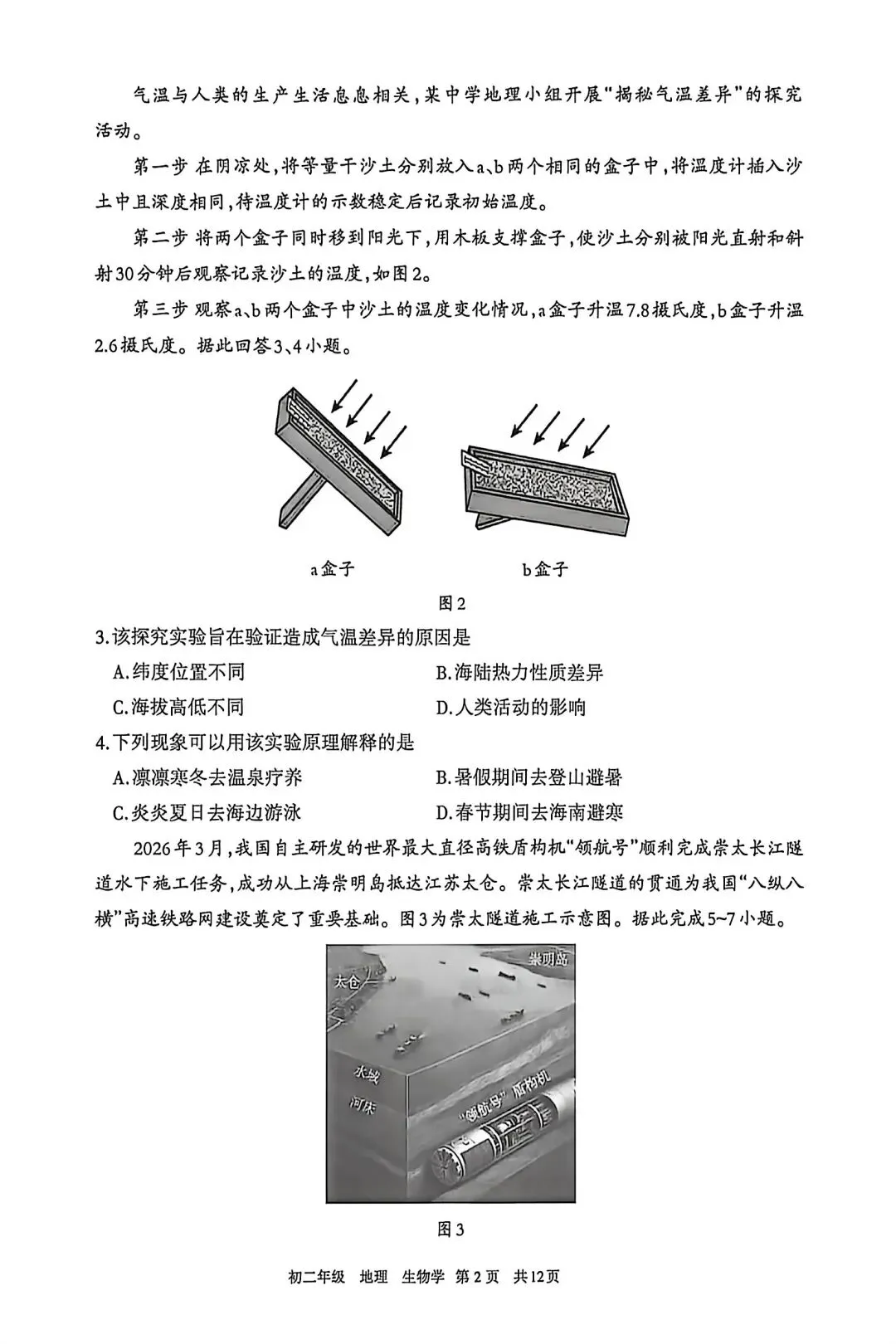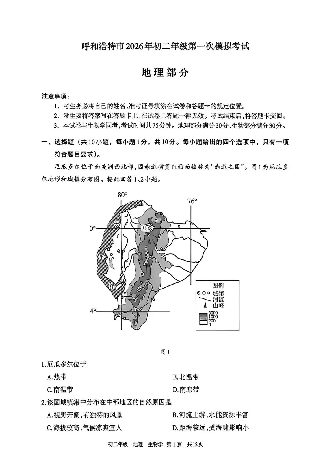 >试卷资源||2026年内蒙古呼和浩特市初二年级第一次模拟考试地理试卷