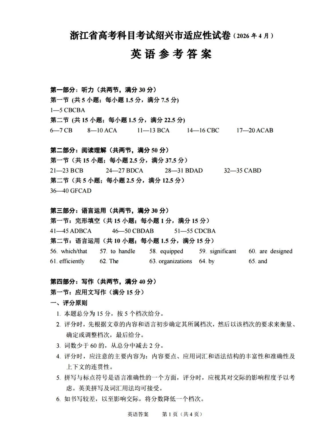 高三二模|2026年4月绍兴高三二模试卷+答案全(内含下载链接)