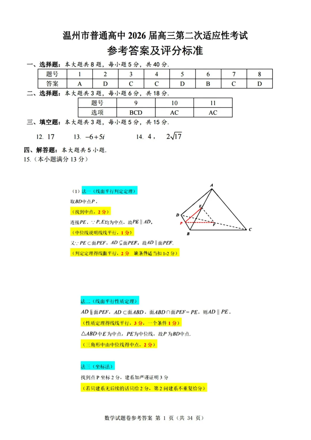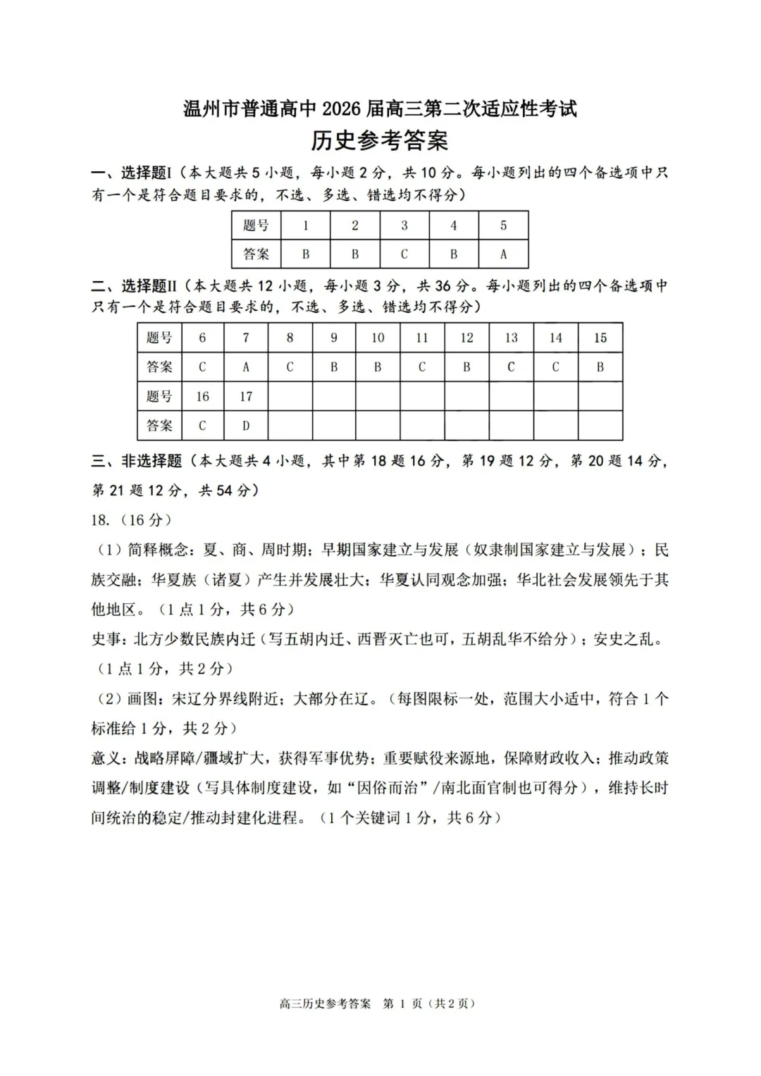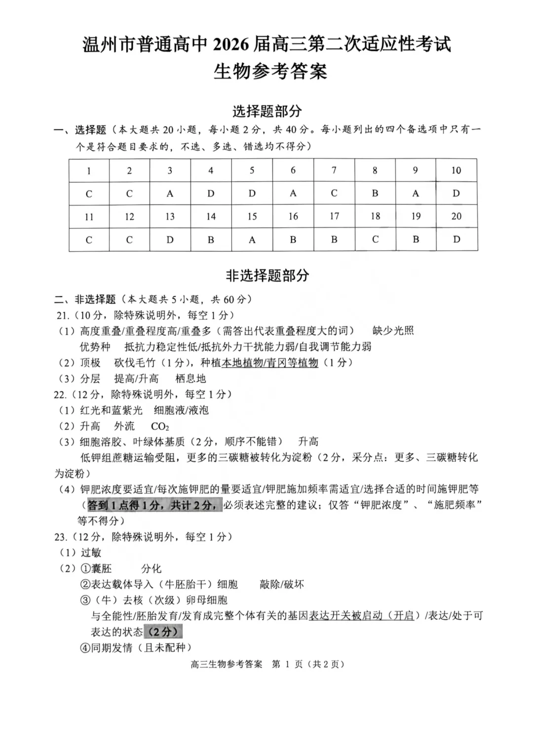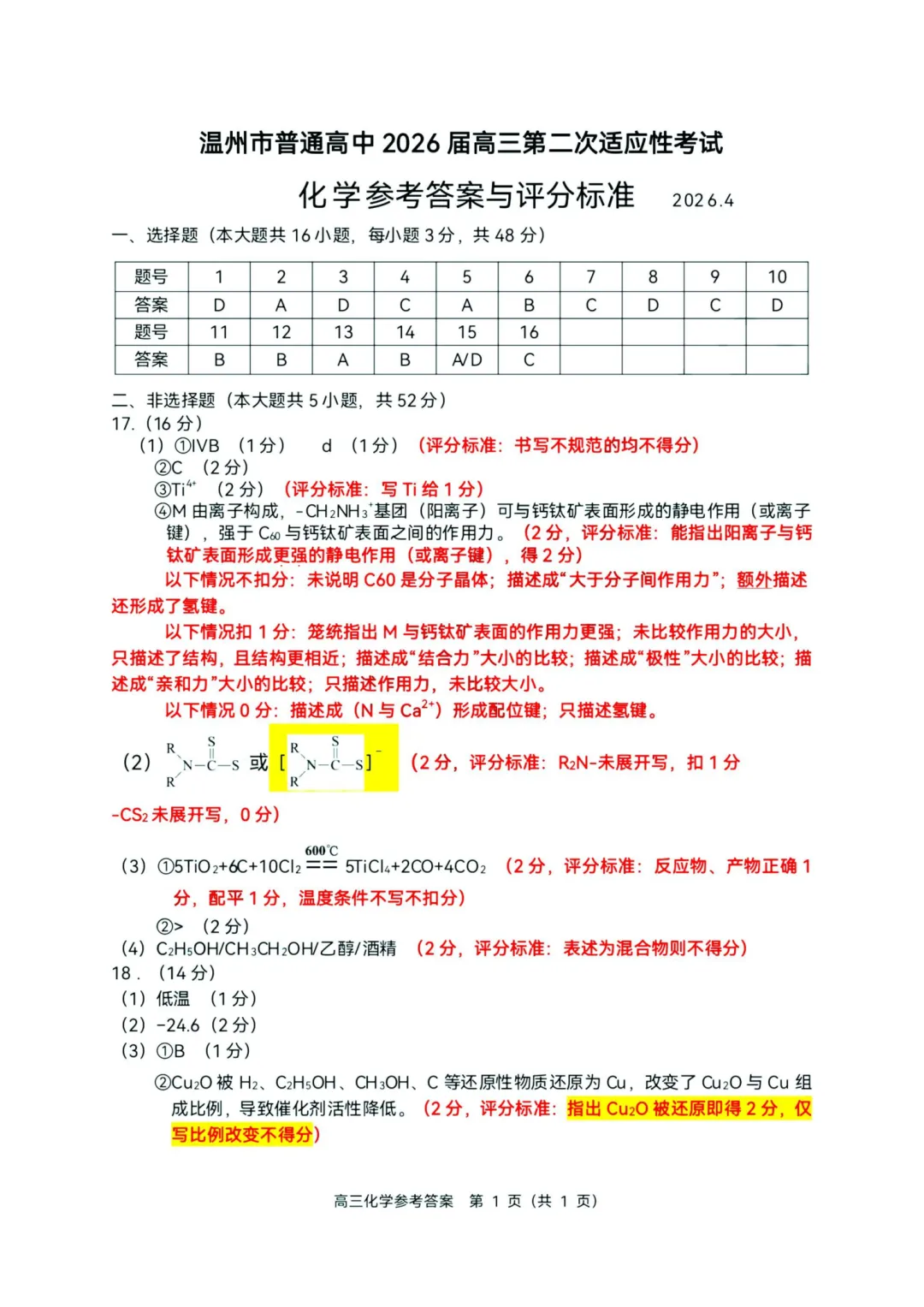 >高三二模|2026年4月温州高三二模试卷+答案全(内含下载链接)