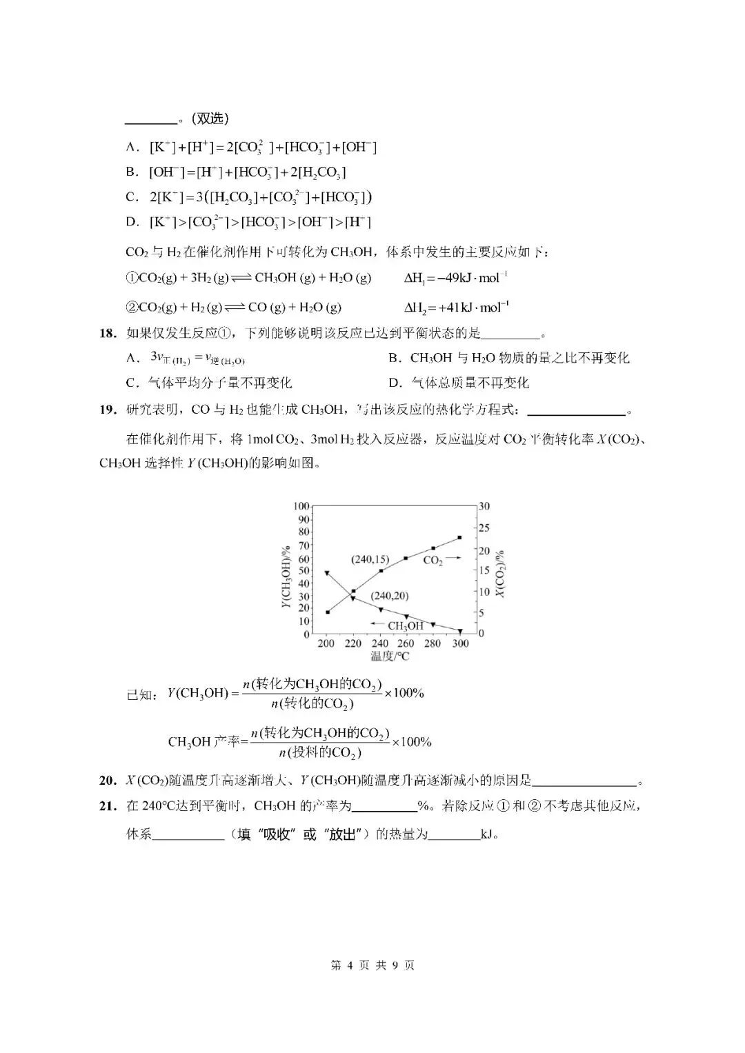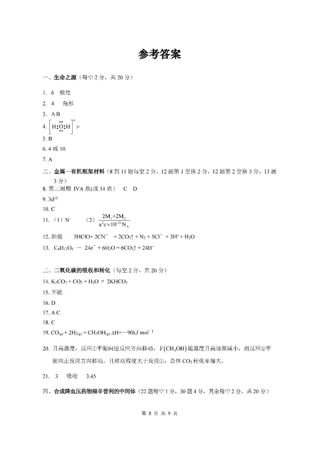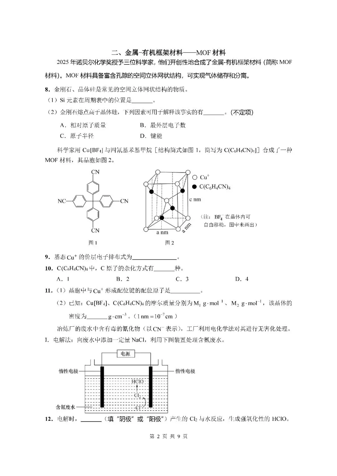 2026届上海市崇明区高三二模化学试卷(含答案)