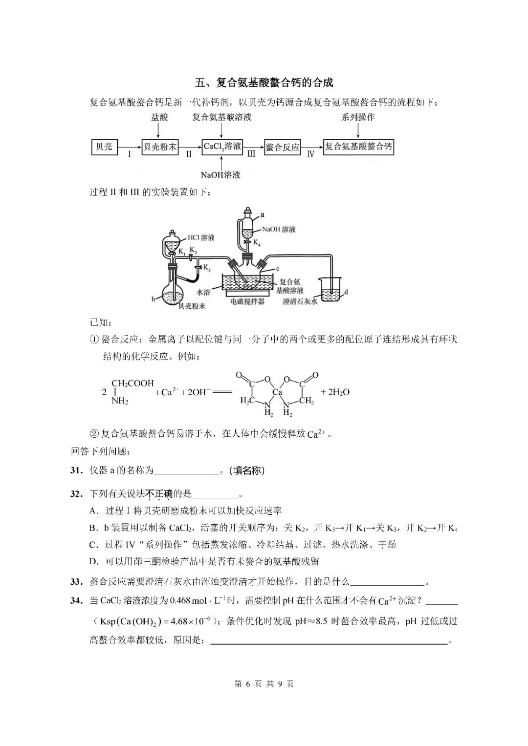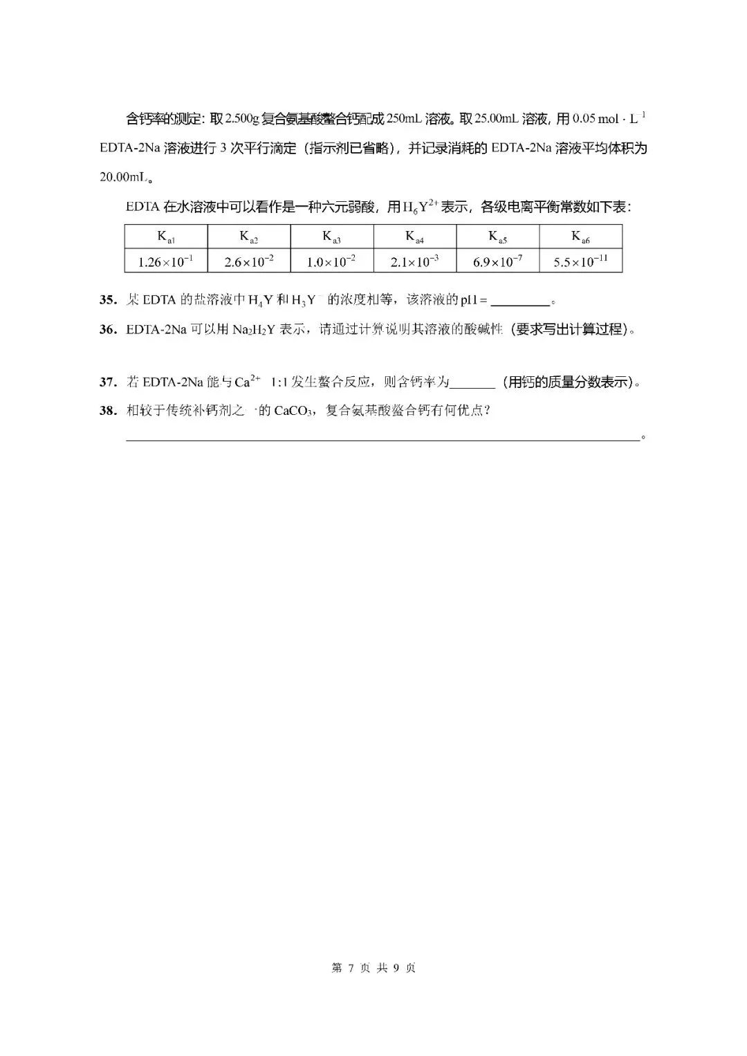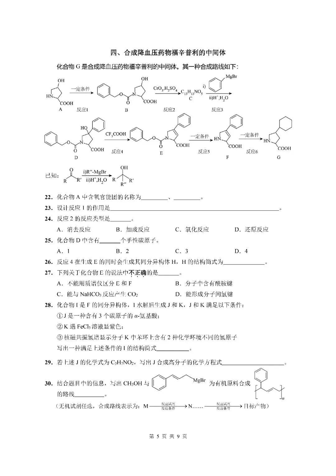 2026届上海市崇明区高三二模化学试卷(含答案)