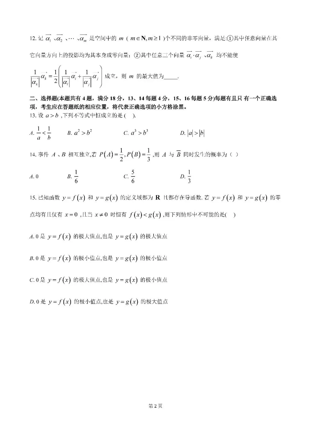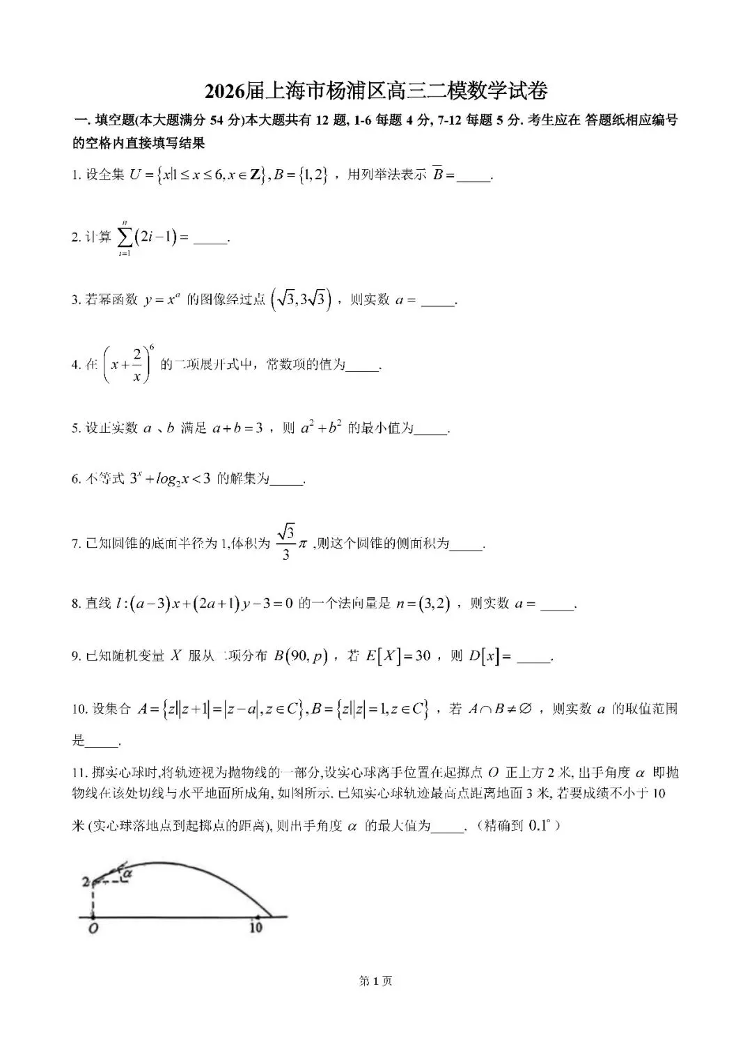 >2026届上海市杨浦区高三二模数学试卷(含答案)
