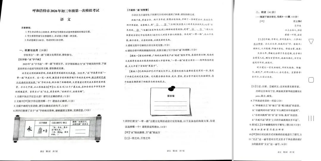 试卷资源||2026年内蒙古呼和浩特市初二年级第一次模拟考试地理试卷
