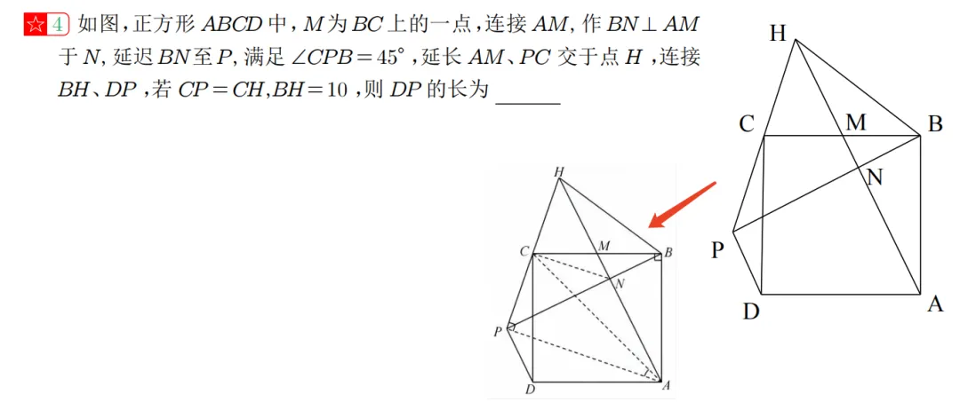 第4题正方形含45°角求线段长,是典型的几何能力考题。