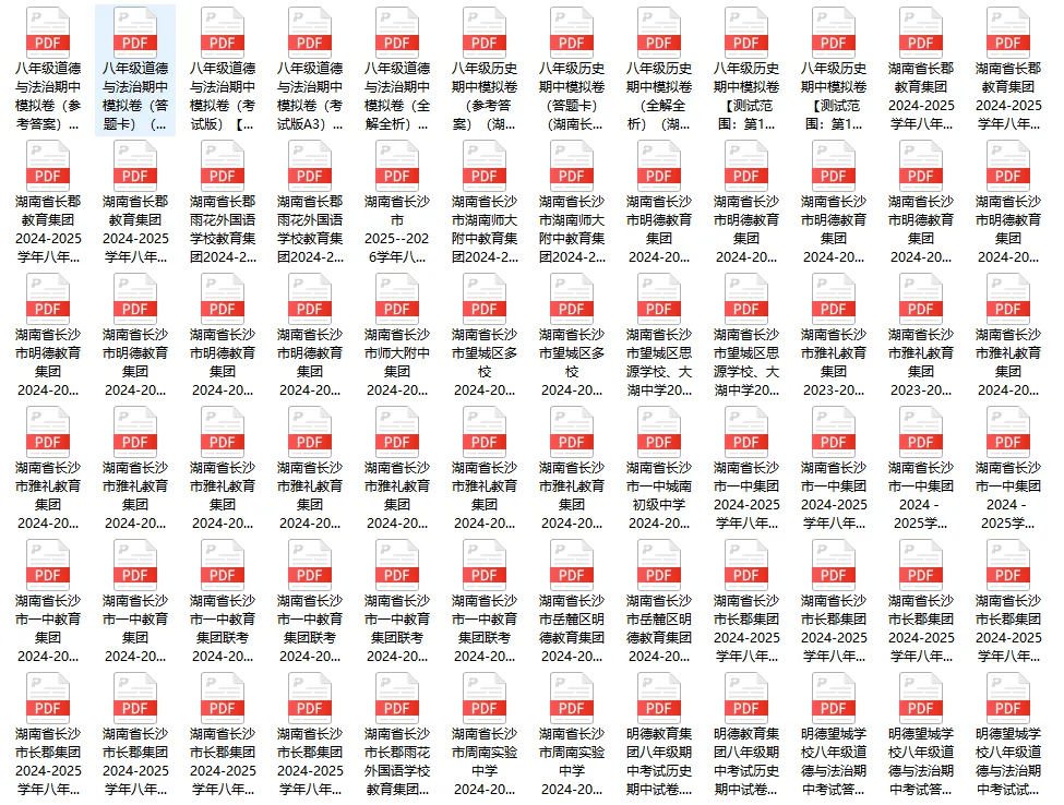 初二:语数英物政史生地(八科全):含长郡、雅礼、师大附中、一中、明德、市实验、周南、青竹湖湘一、华益、长郡雨外、望城区、一中城南、明德雨花、明德望城、立信共189个文档