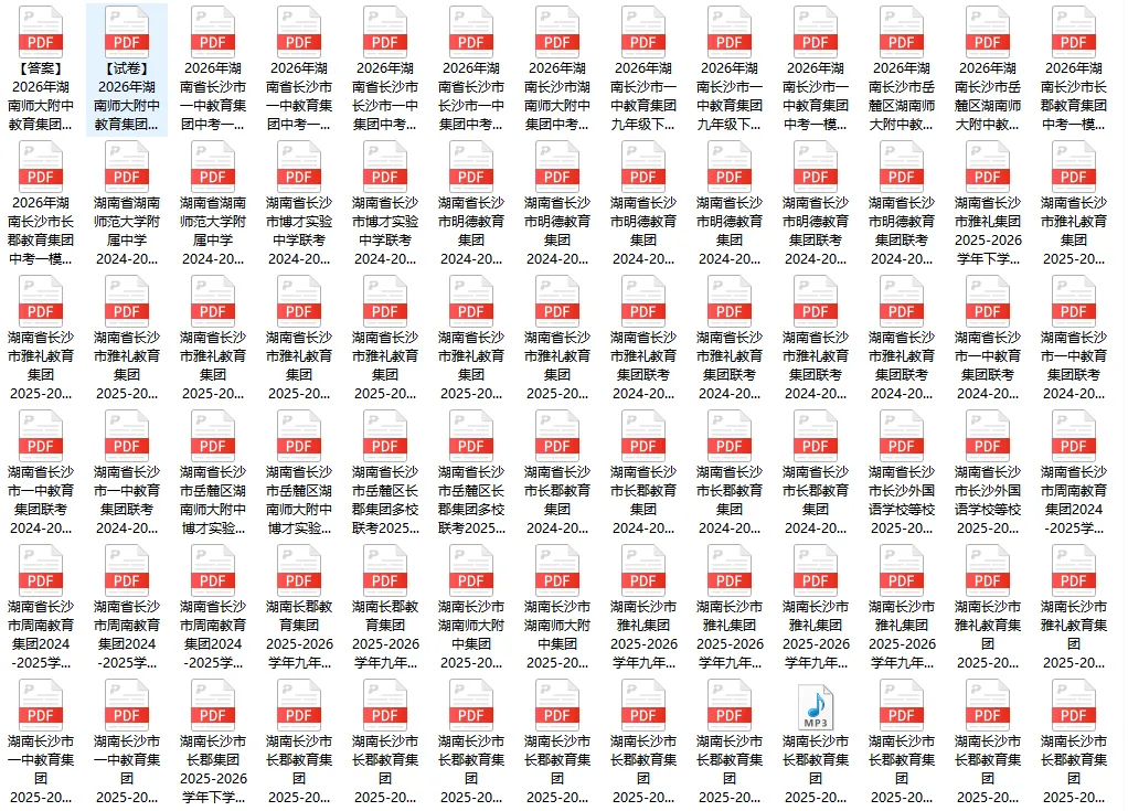 初三:语数英物化政史(七科全):含长郡、雅礼、师大附中、一中、明德、周南、市实验、青竹湖湘一、周南梅溪湖共202个文档