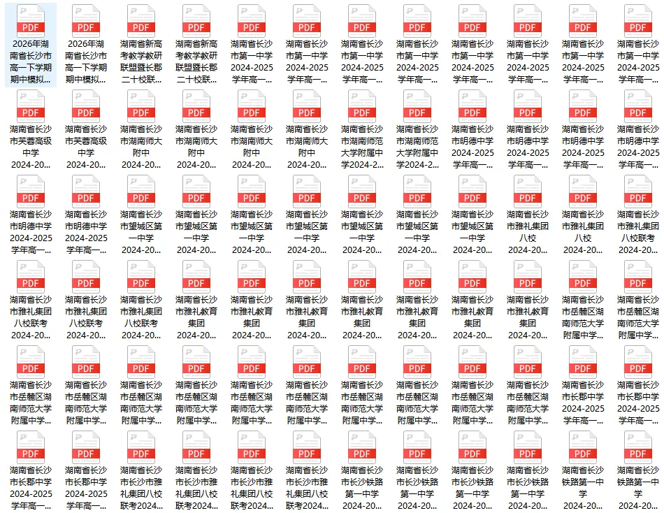 高一:语数英物化生政史地(九科全):含长郡中学、雅礼中学、师大附中、长沙市一中、明德中学、长铁一中、望城一中、弘益中学、南雅中学、明德中学、湖南省湖湘教育三新探索协作体、长沙市芙蓉高级中学、长沙市平高高级中学、长郡二十校联盟共173个文档