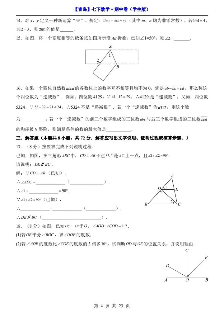 今日分享26新七年级下册数学青岛期中试卷(附答案+答题卡)完整电子版可打印!高清可打印,每日轻量练习,拒绝无效刷题,用系统化资料筑牢学科基础,让假期成为提升的黄金期,开学轻松领跑。