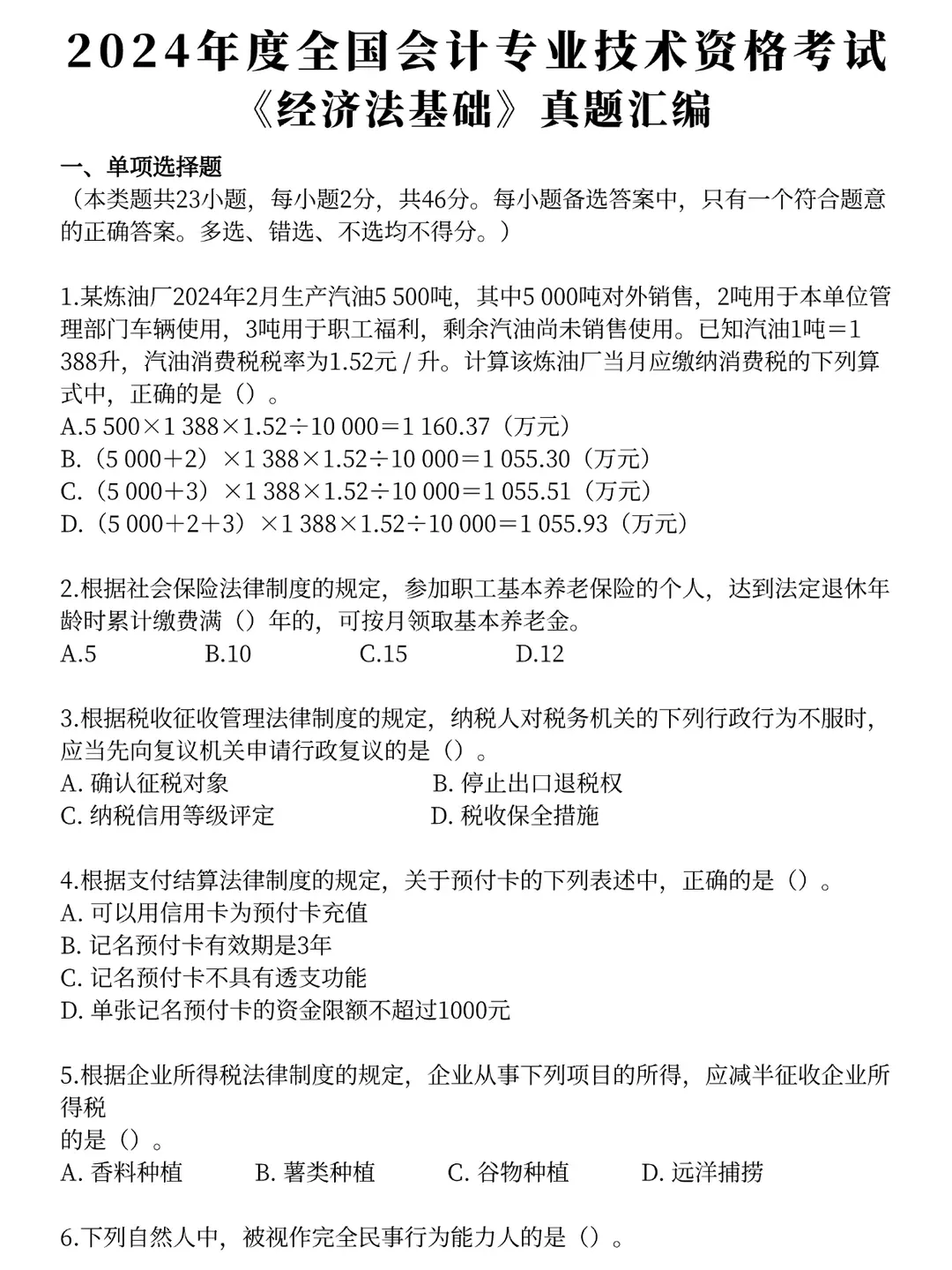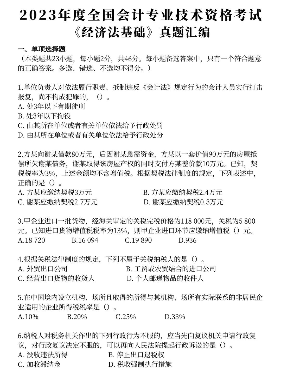 经济法基础历年真题卷解析