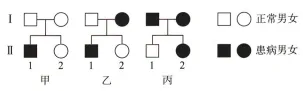 11.图甲~丙是三个家系的系谱图。下列叙述正确的是( )