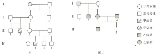 (4)若图一中Ⅳ-1与图二中Ⅲ-1婚配,生出患甲病孩子的概率为______。