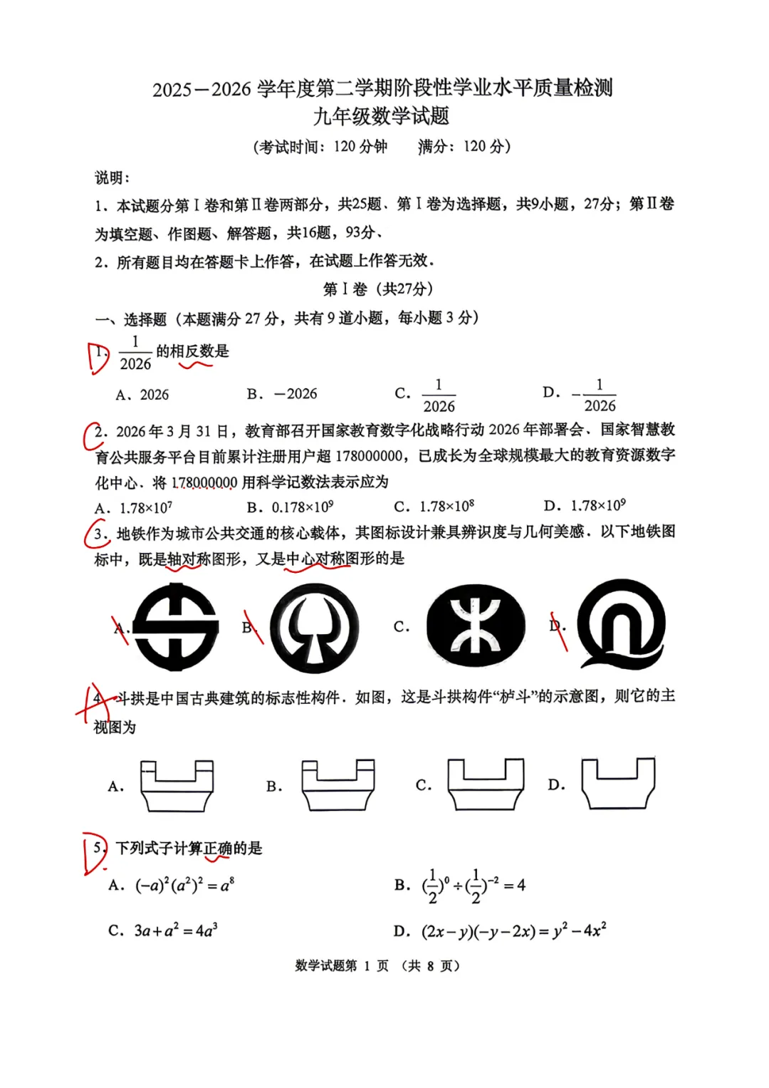 【试卷解析】2026年青岛初中市南一模数学试卷解析