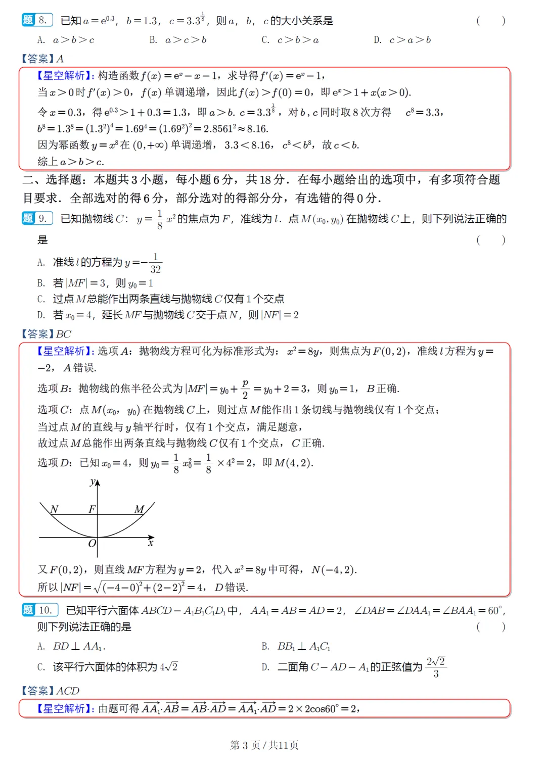 244.江西省八所重点中学高三联考数学试卷及逐题解析(2026.4)