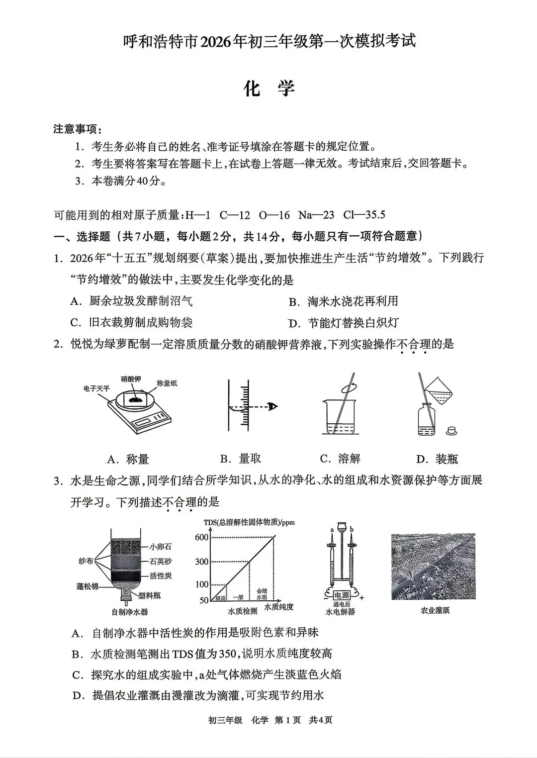 [一模]2026年许昌市中招一模试卷(7科全)试卷、听力及参考答案
