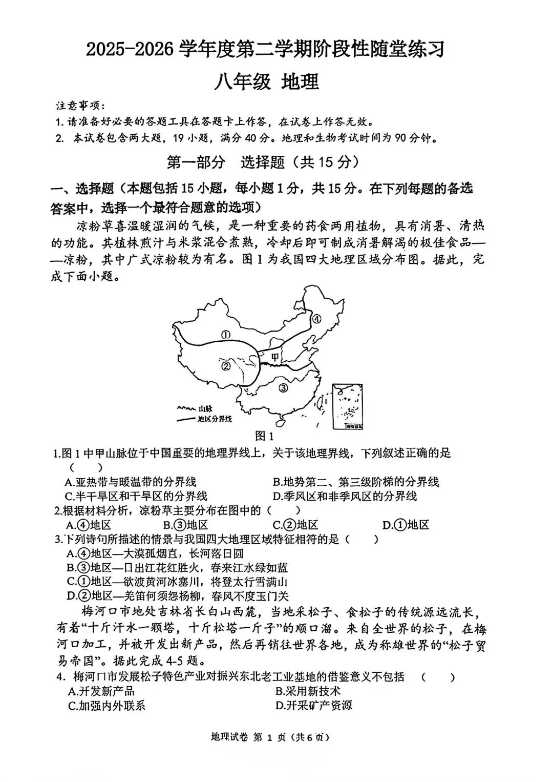 2025-2026辽宁大连甘井子区八下4月地理含答案(无水印).pdf