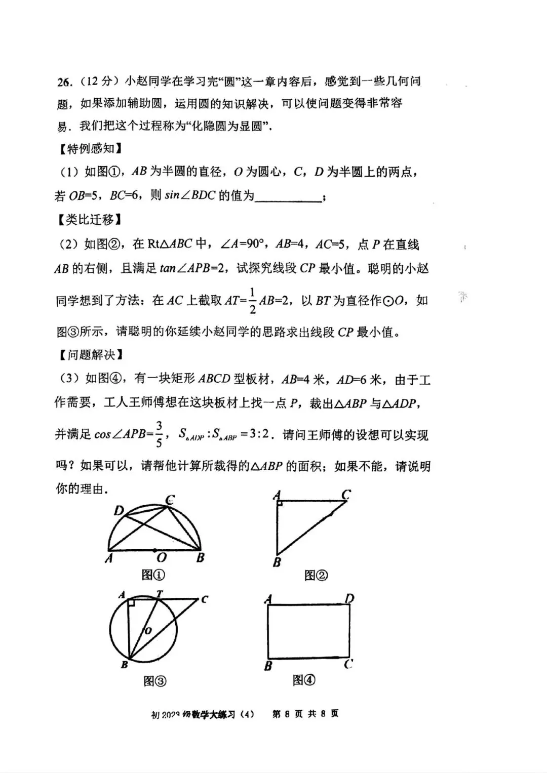 【试卷/初二下】2025-2026辽宁大连甘井子区八下4月英语(含答案)可下载
