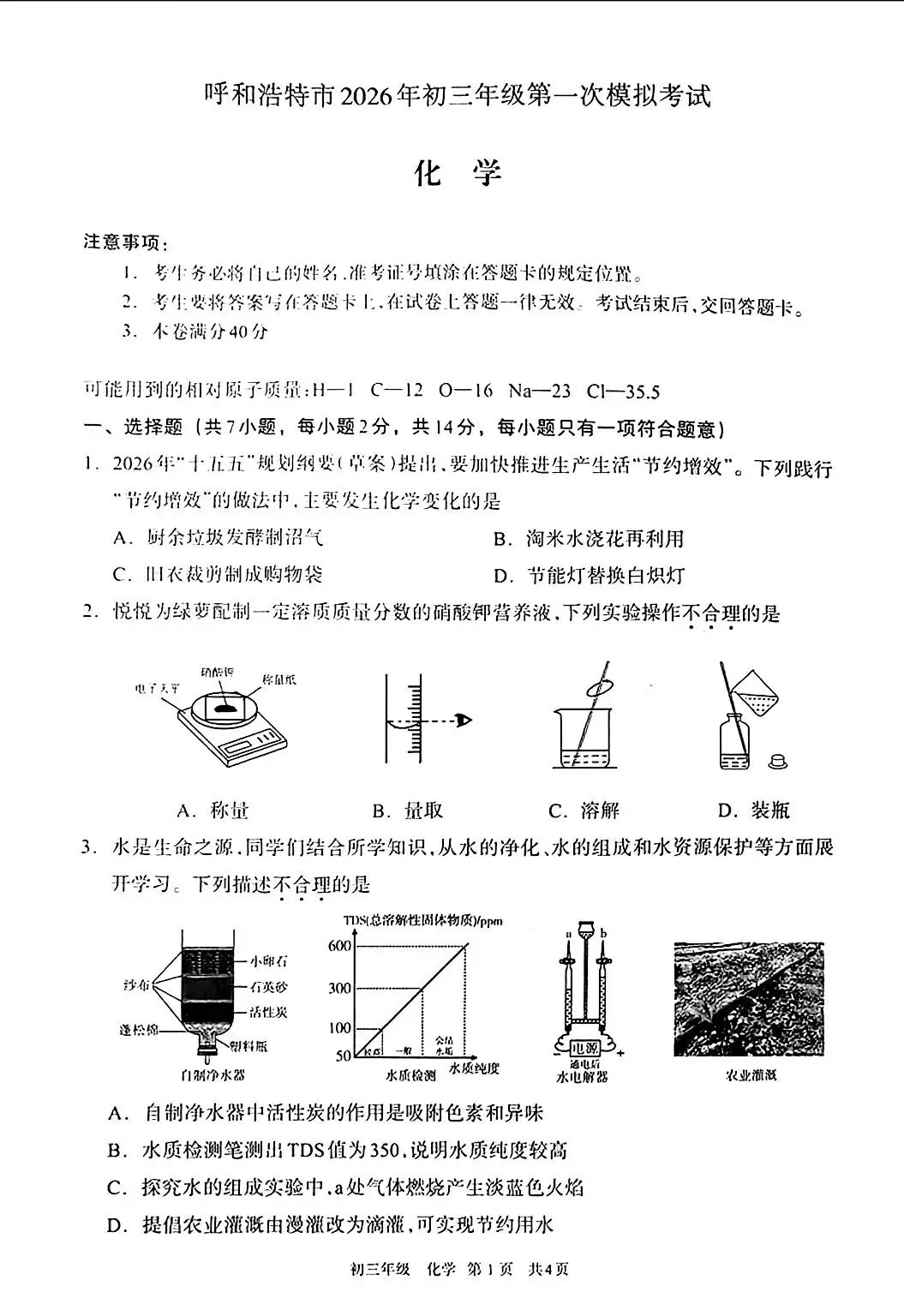 【2025内蒙古一模】2025年内蒙古自治区初中学业水平考试适应性测试-物理 化学