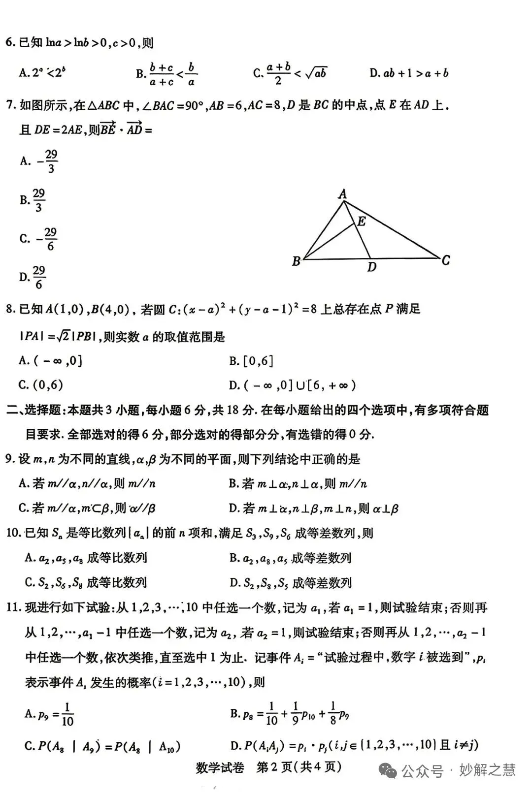 2026届内蒙古包头二模数学试卷及答案
