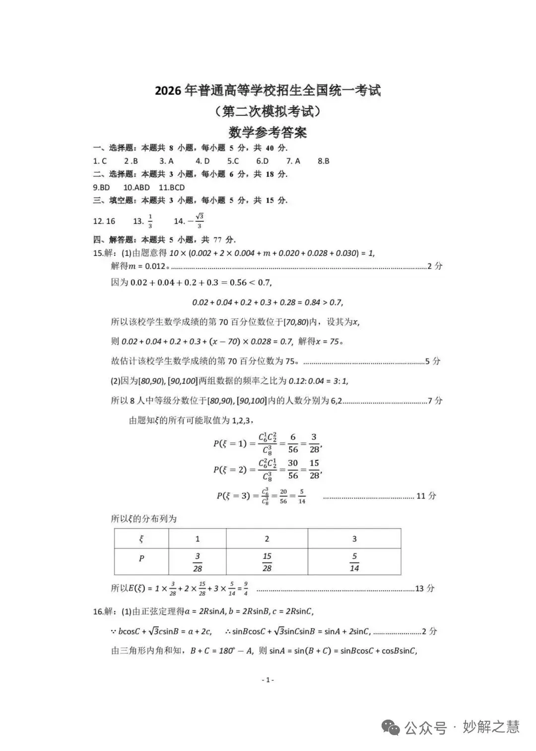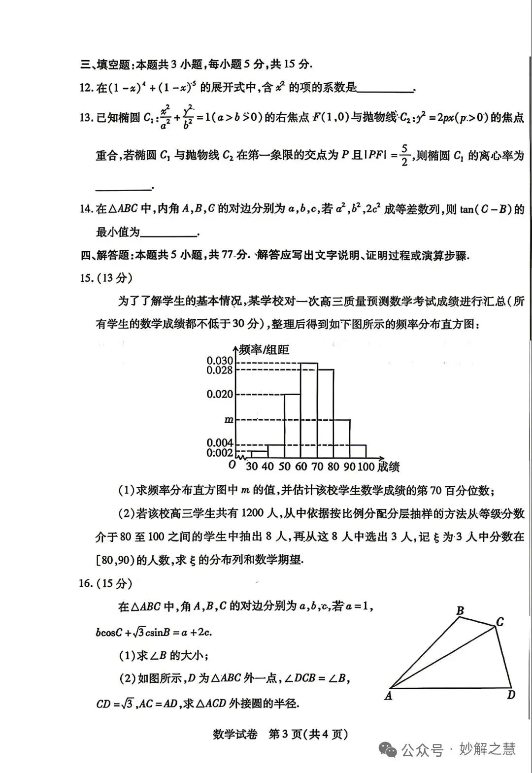 >2026届内蒙古包头二模数学试卷及答案