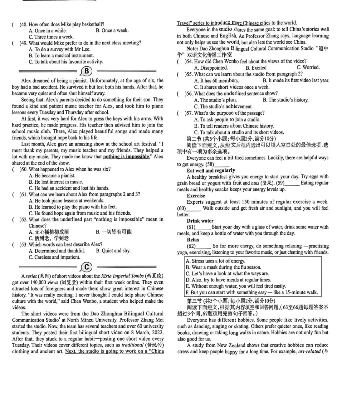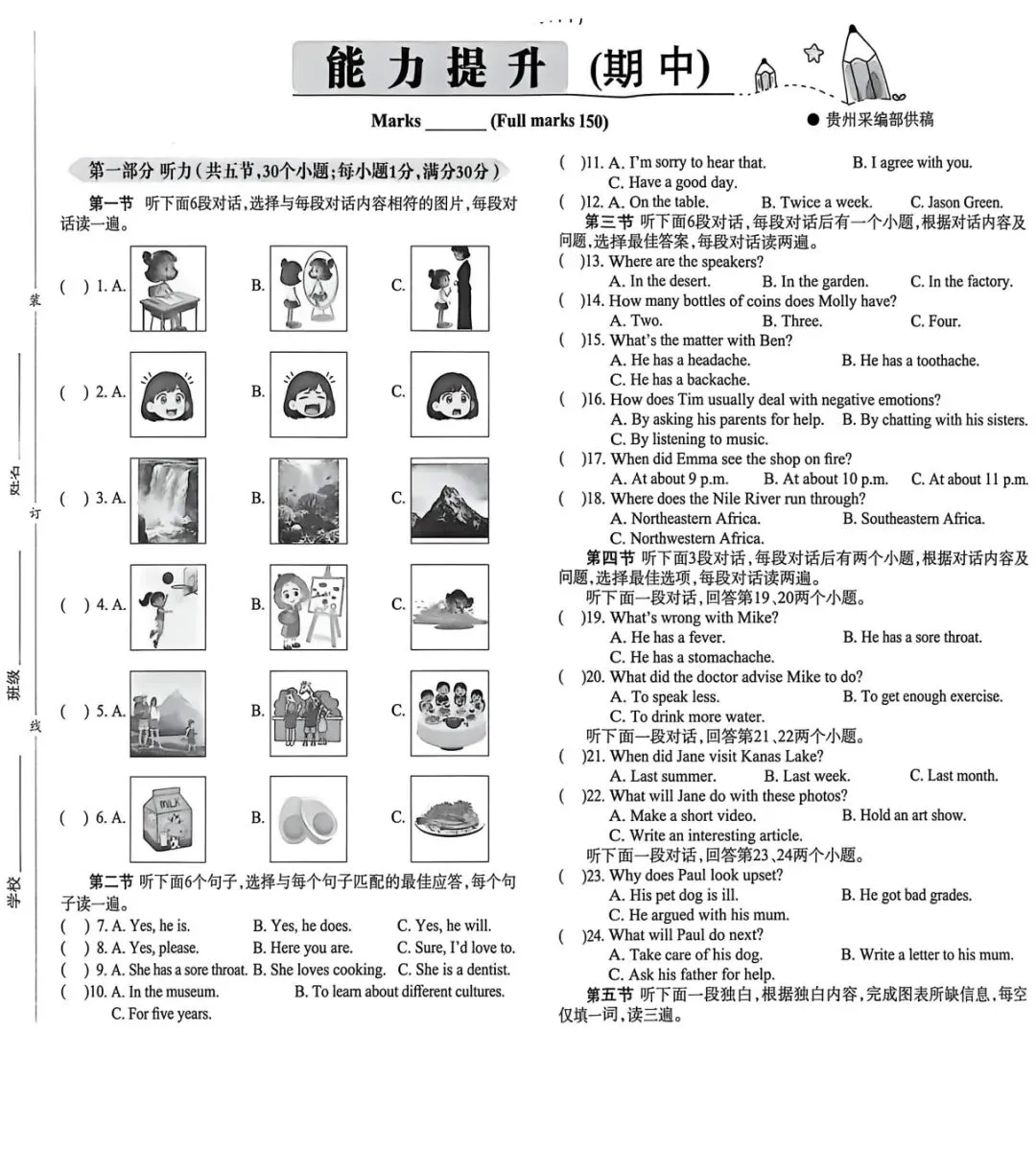 2026年许昌市中招一模试卷及答案和听力