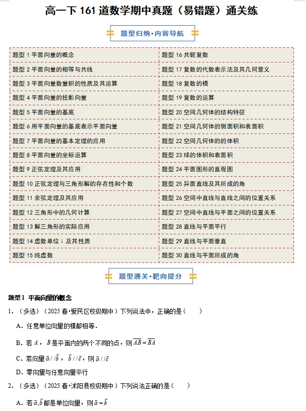 >高一下练透这一百多道期中考试真题,期中考试稳拿!