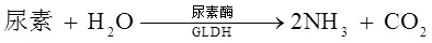 NH3+α-酮戊二酸+NADH+H+→谷氨酰胺+NAD++H2O340nm(NAD+)处测定吸光度,即可间接得到尿素浓度。