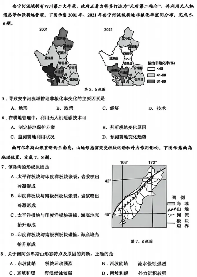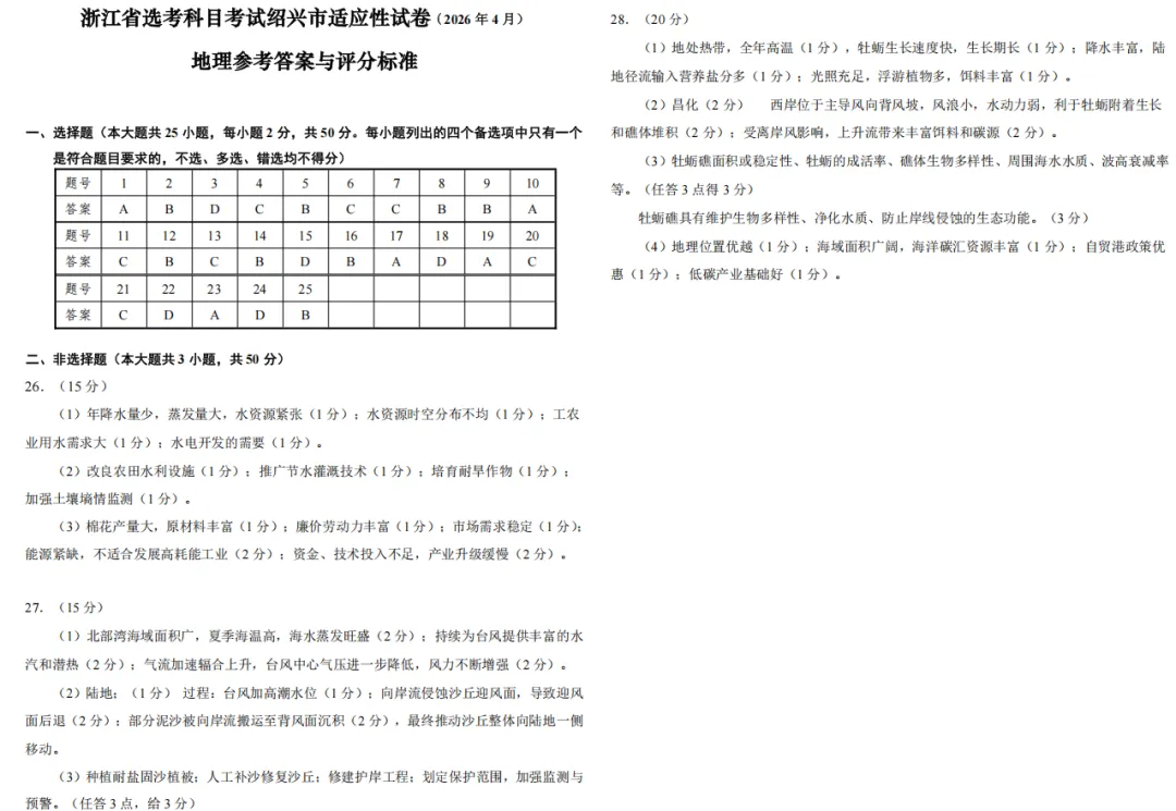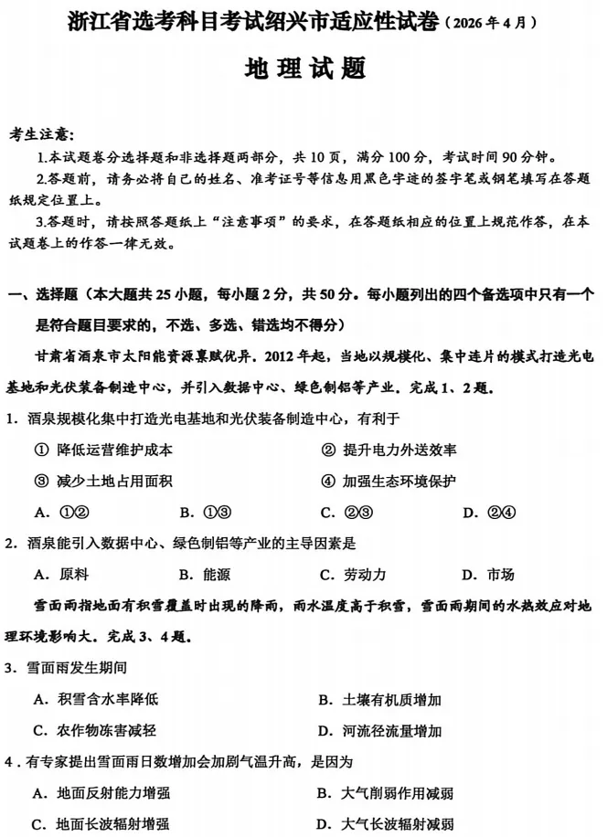 2026年4月浙江省选考科目考试绍兴市适应性试卷地理试题.pdf