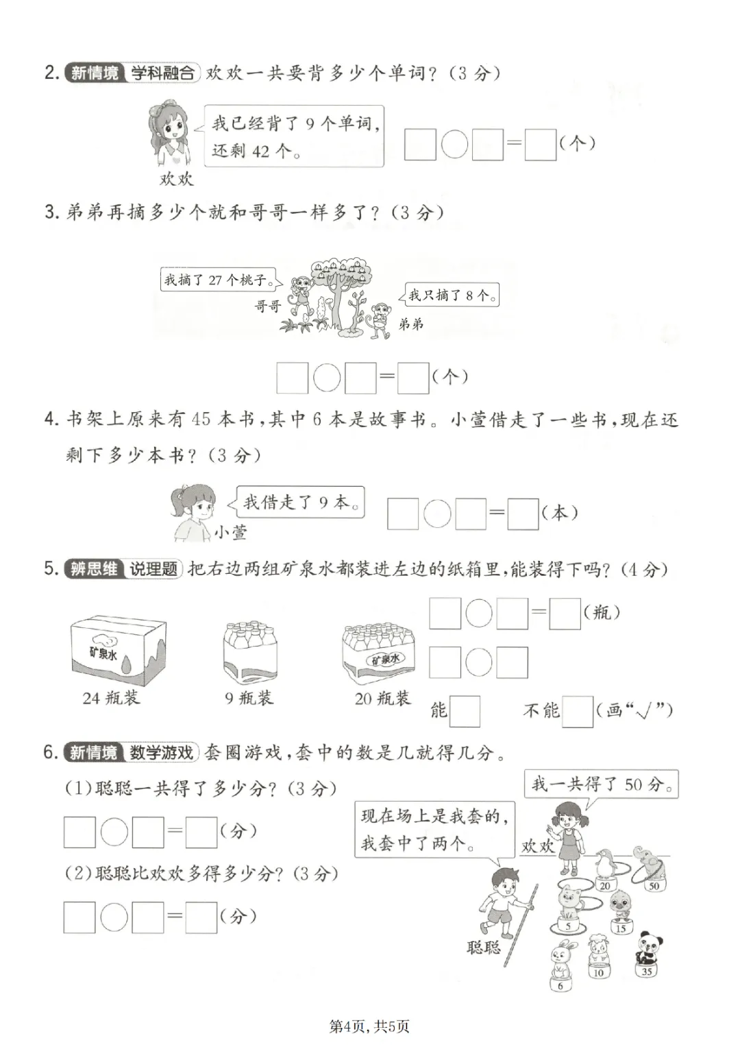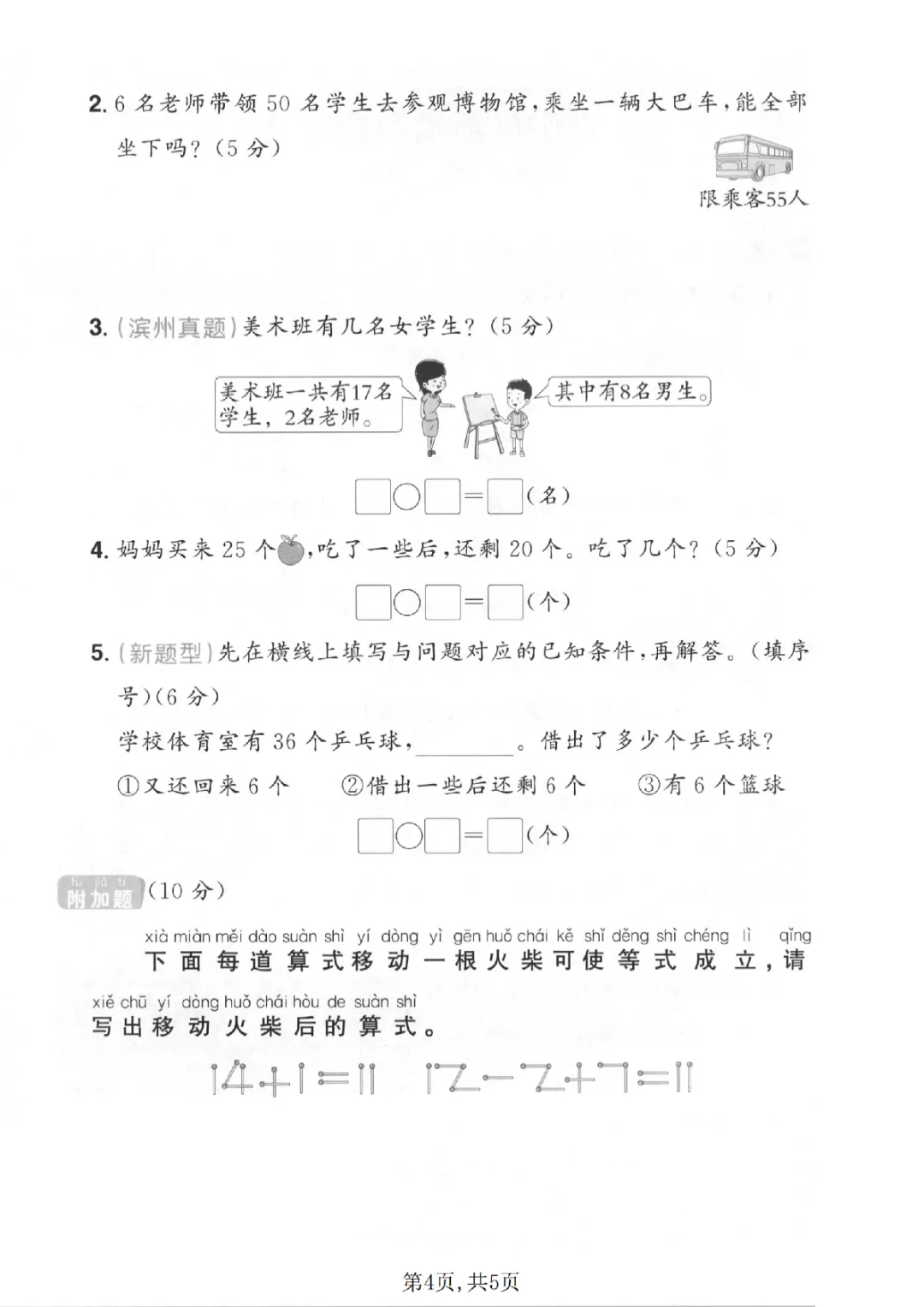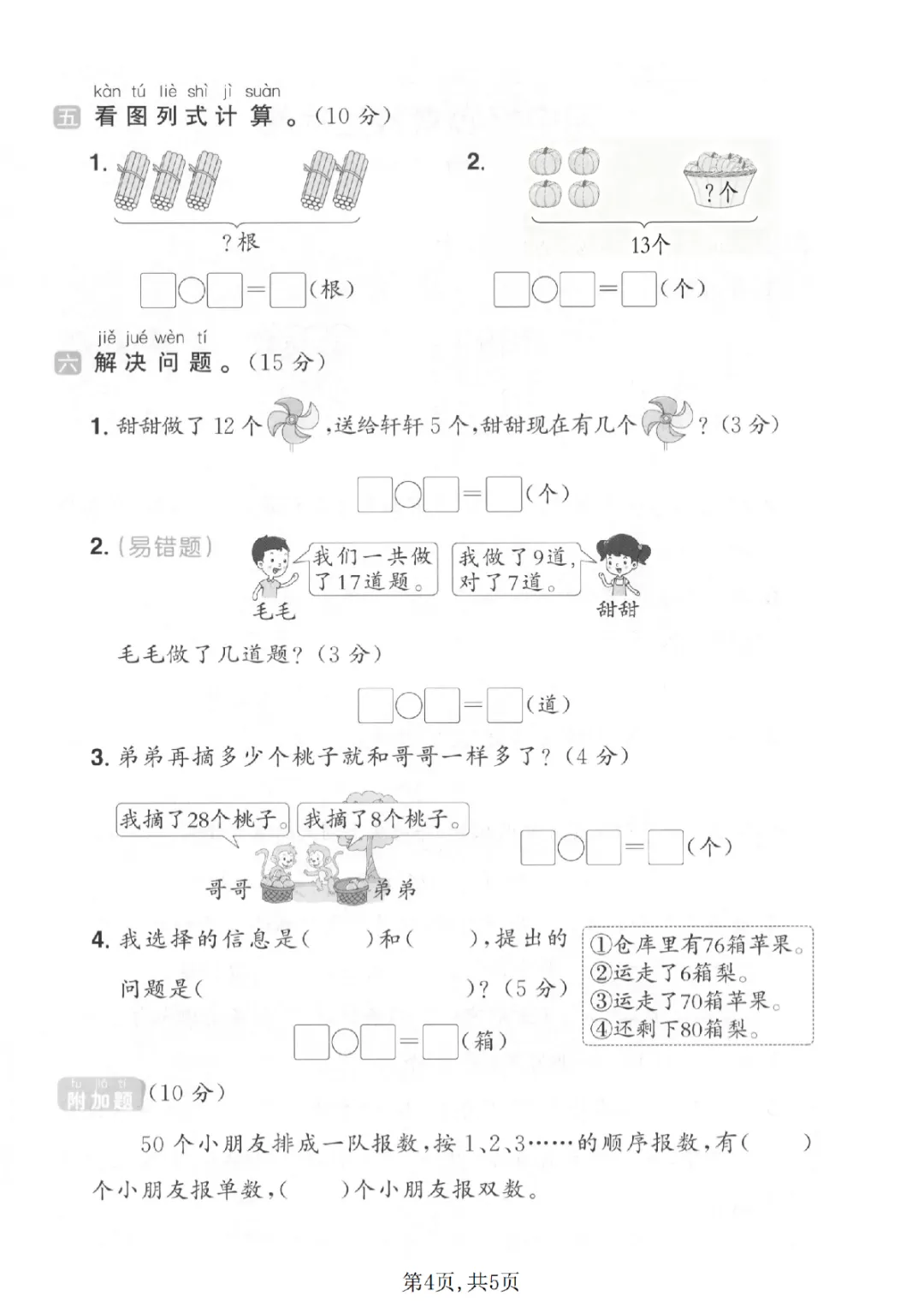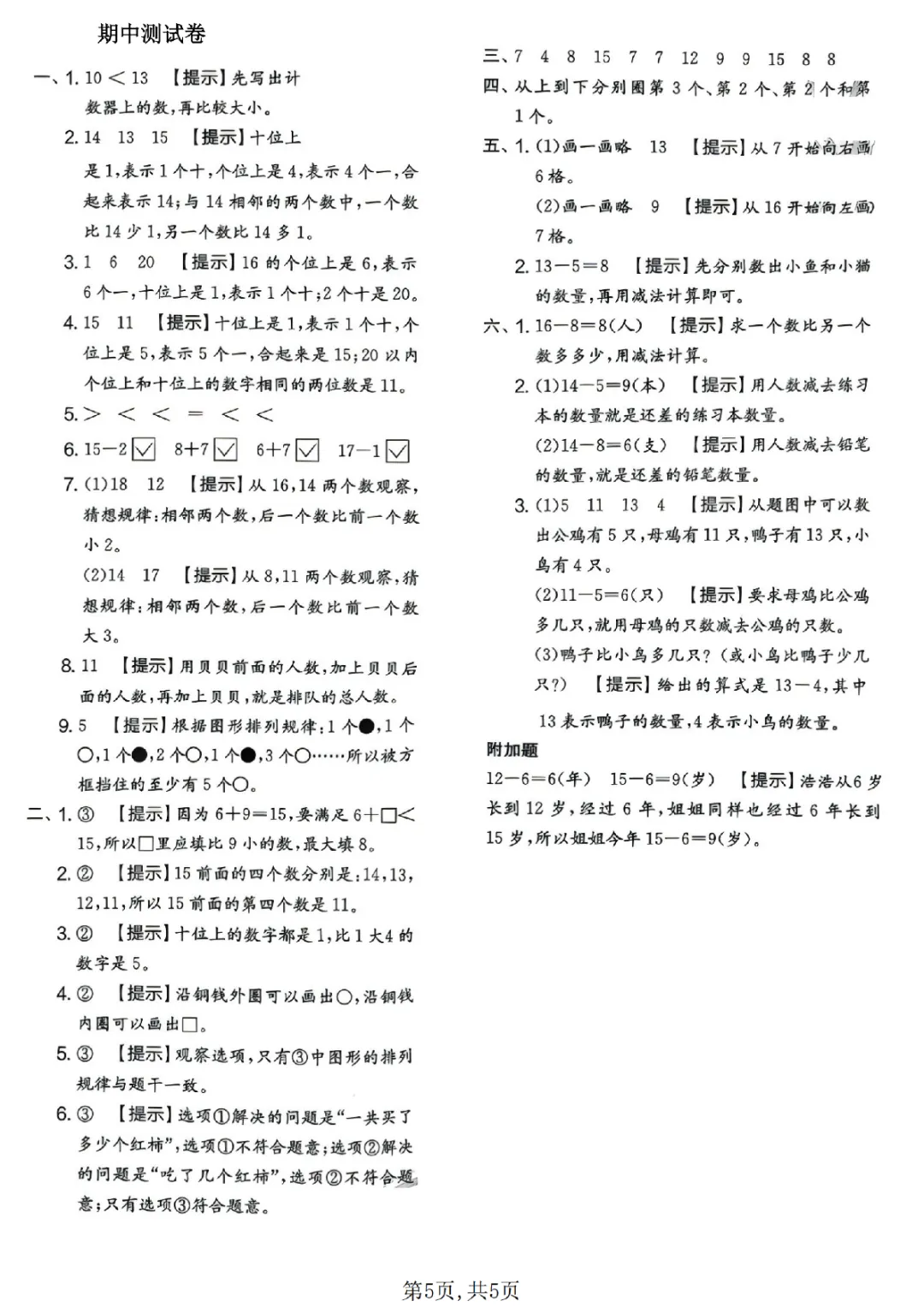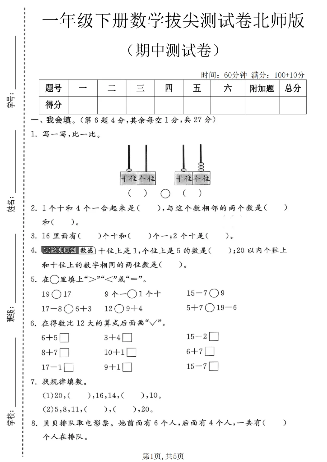 2026年一年级下册数学期中试卷(共5套)|电子版可打印