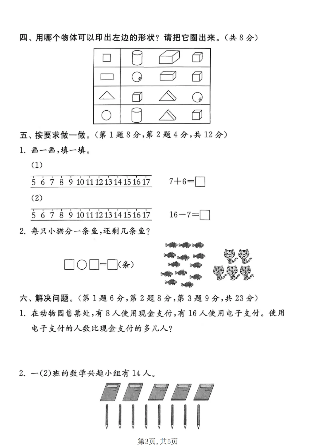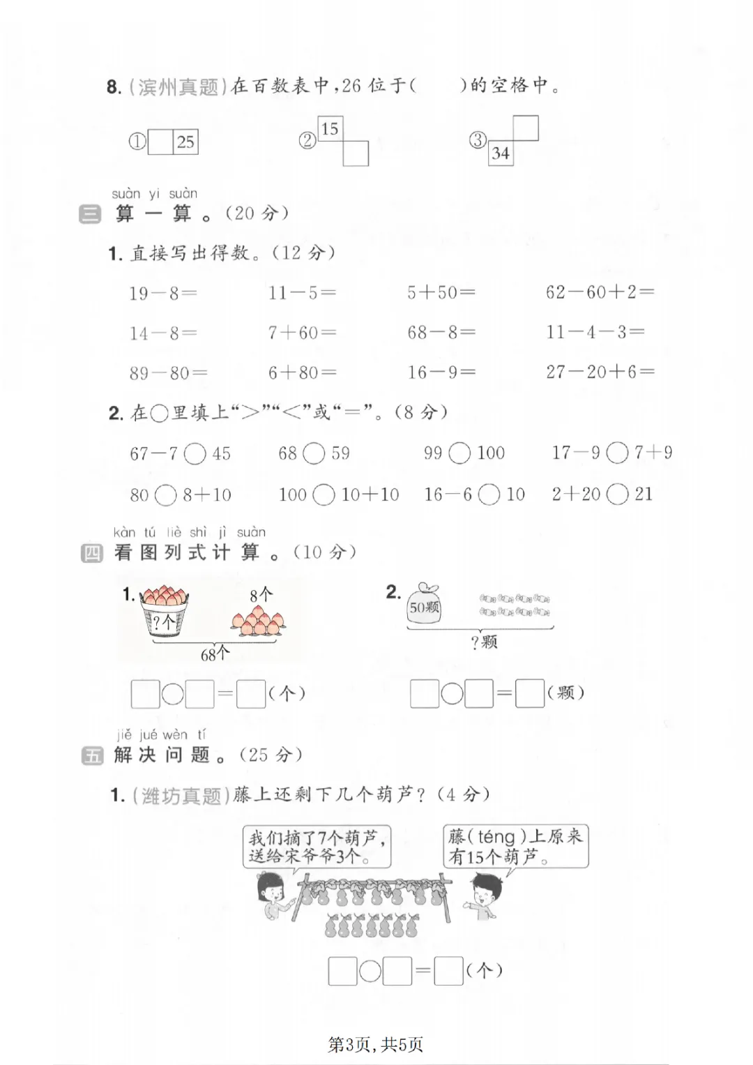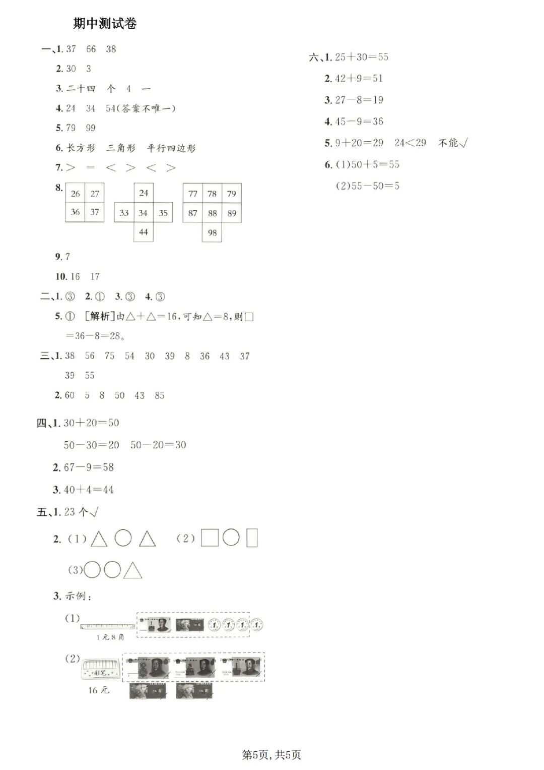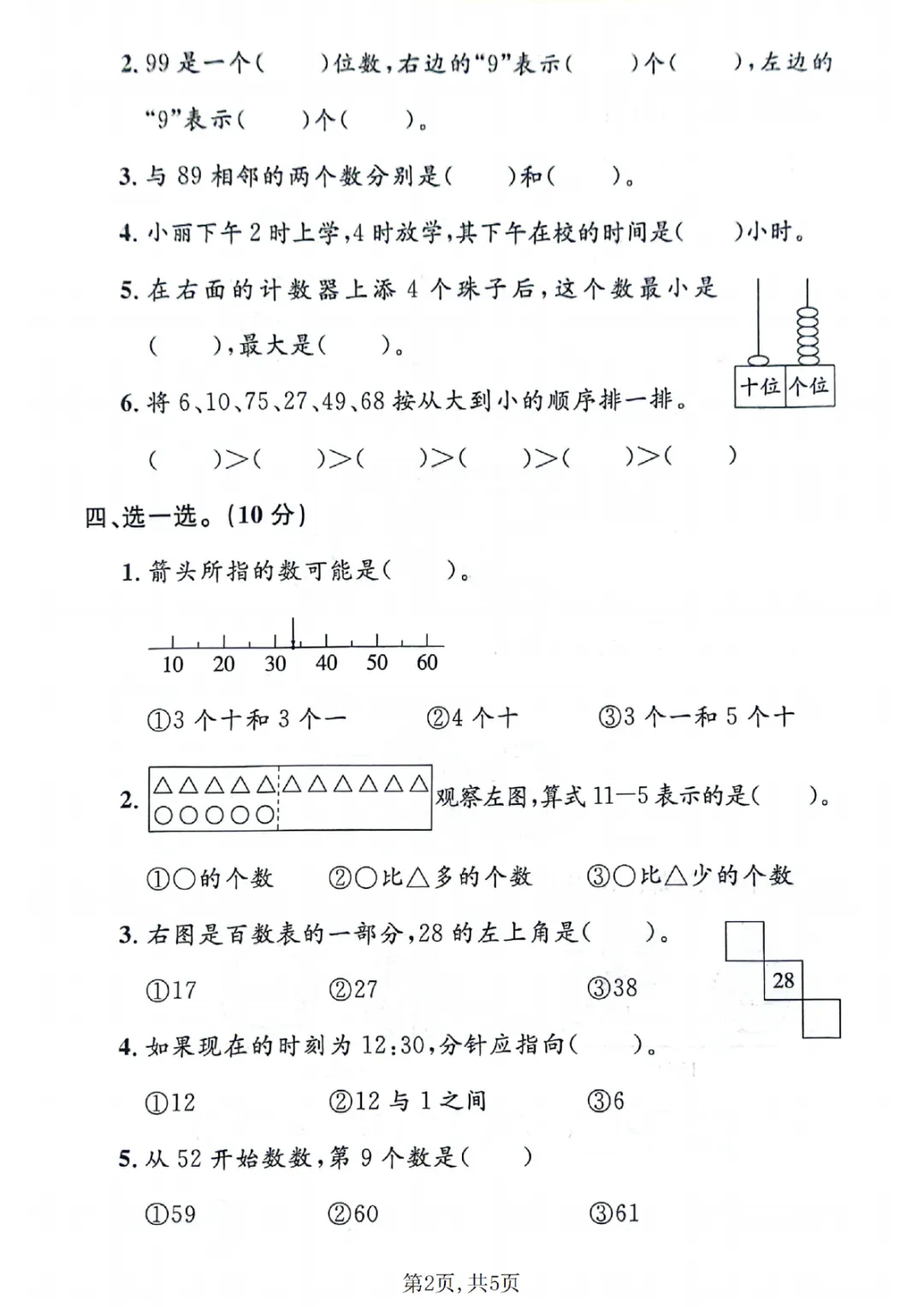 2026年一年级下册数学期中试卷(共5套)(电子版可打印)