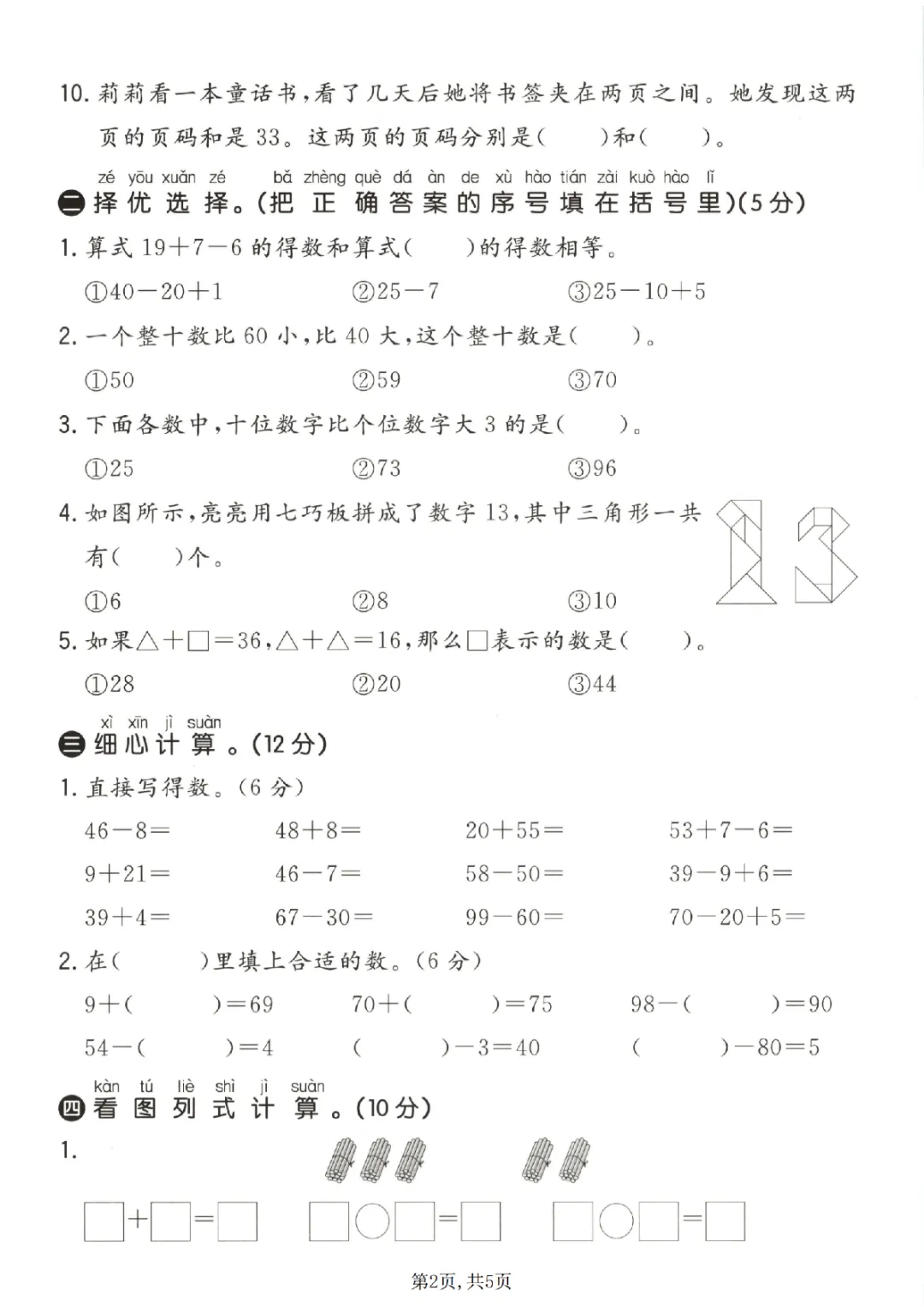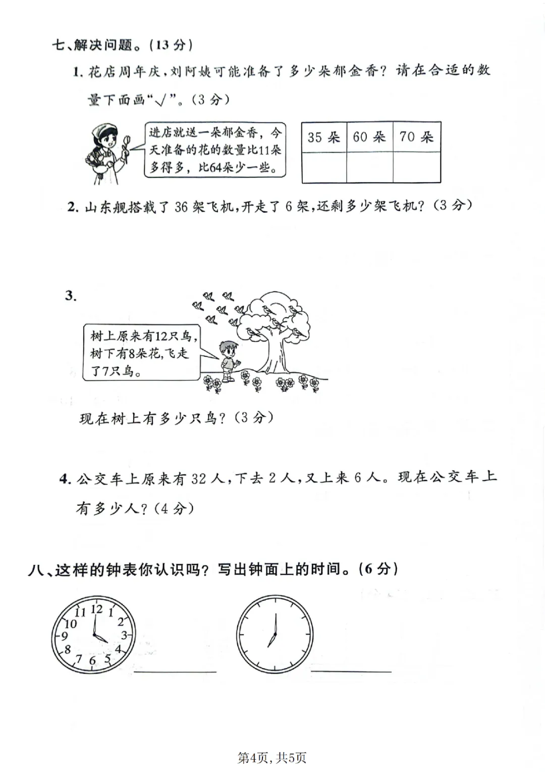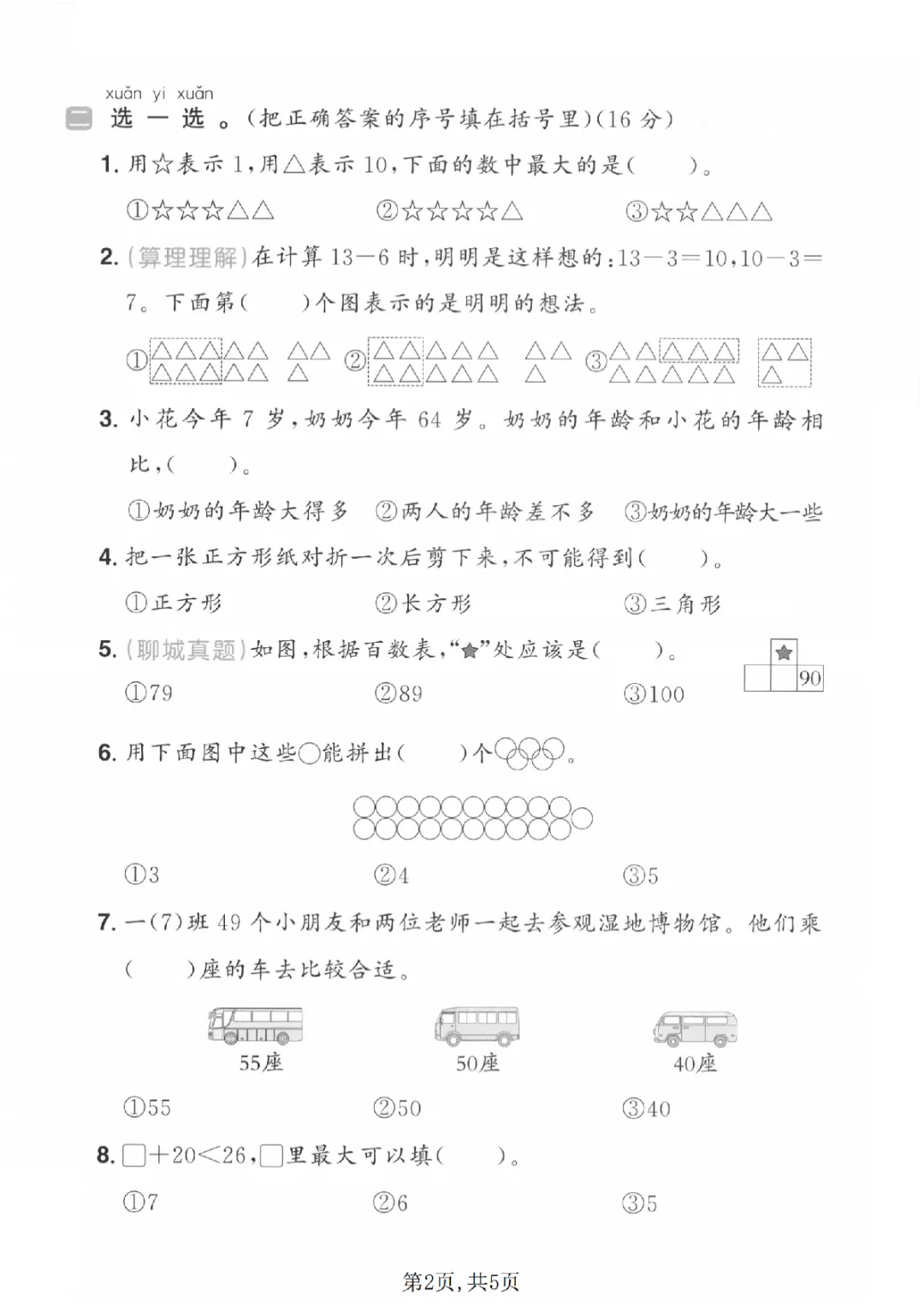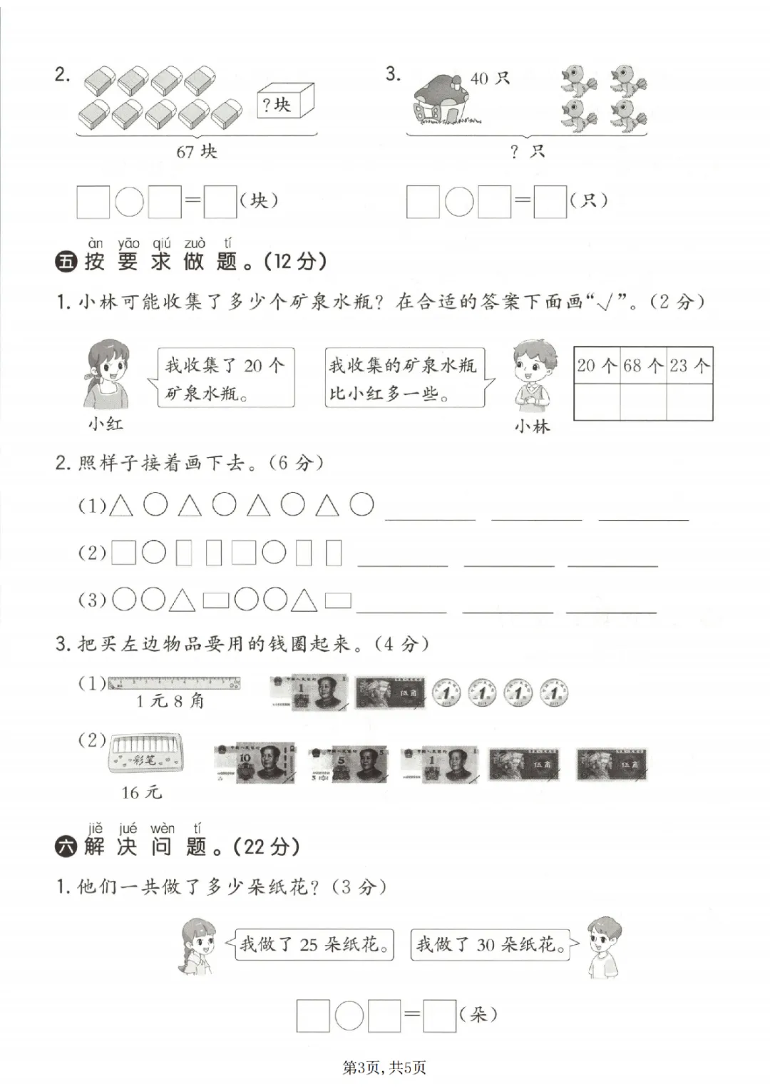 2026年一年级下册数学期中试卷(共5套)(电子版可打印)