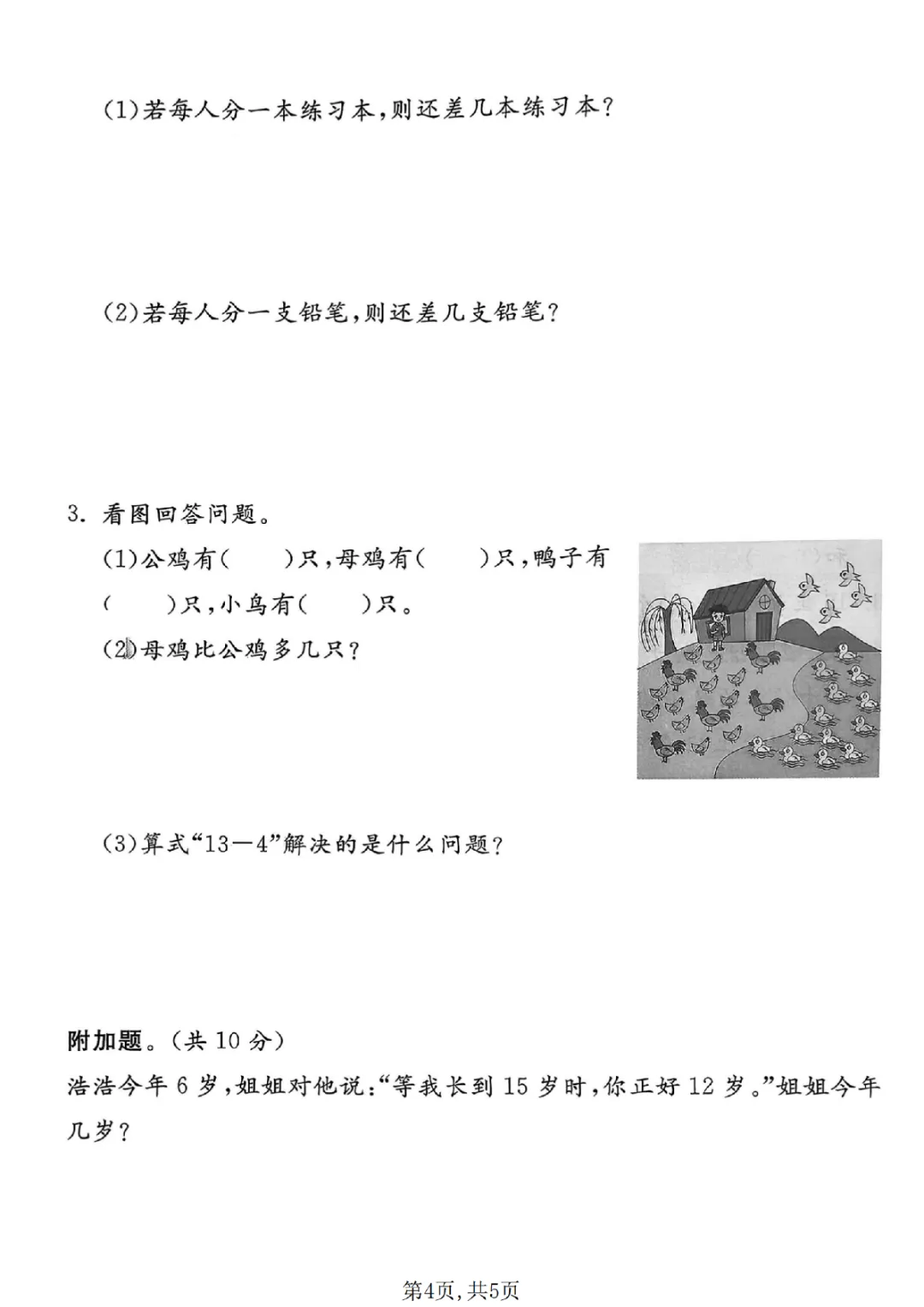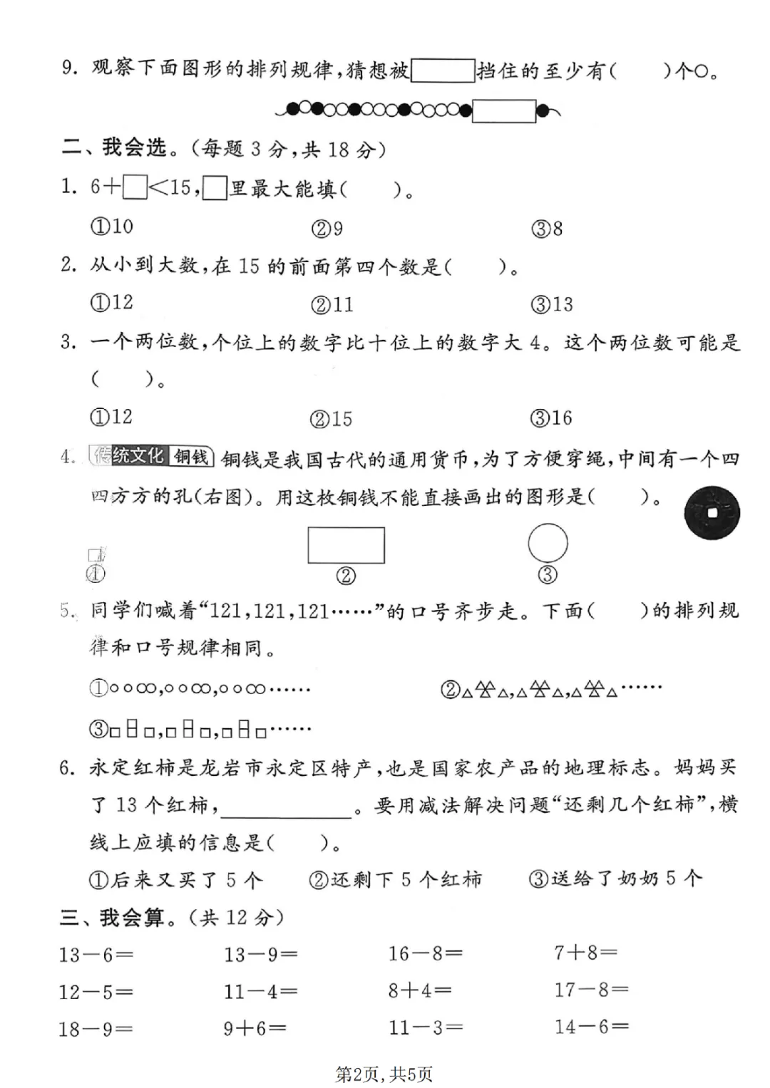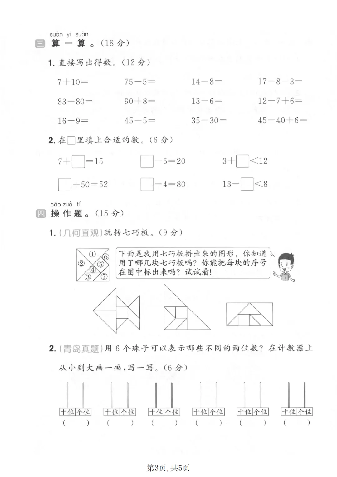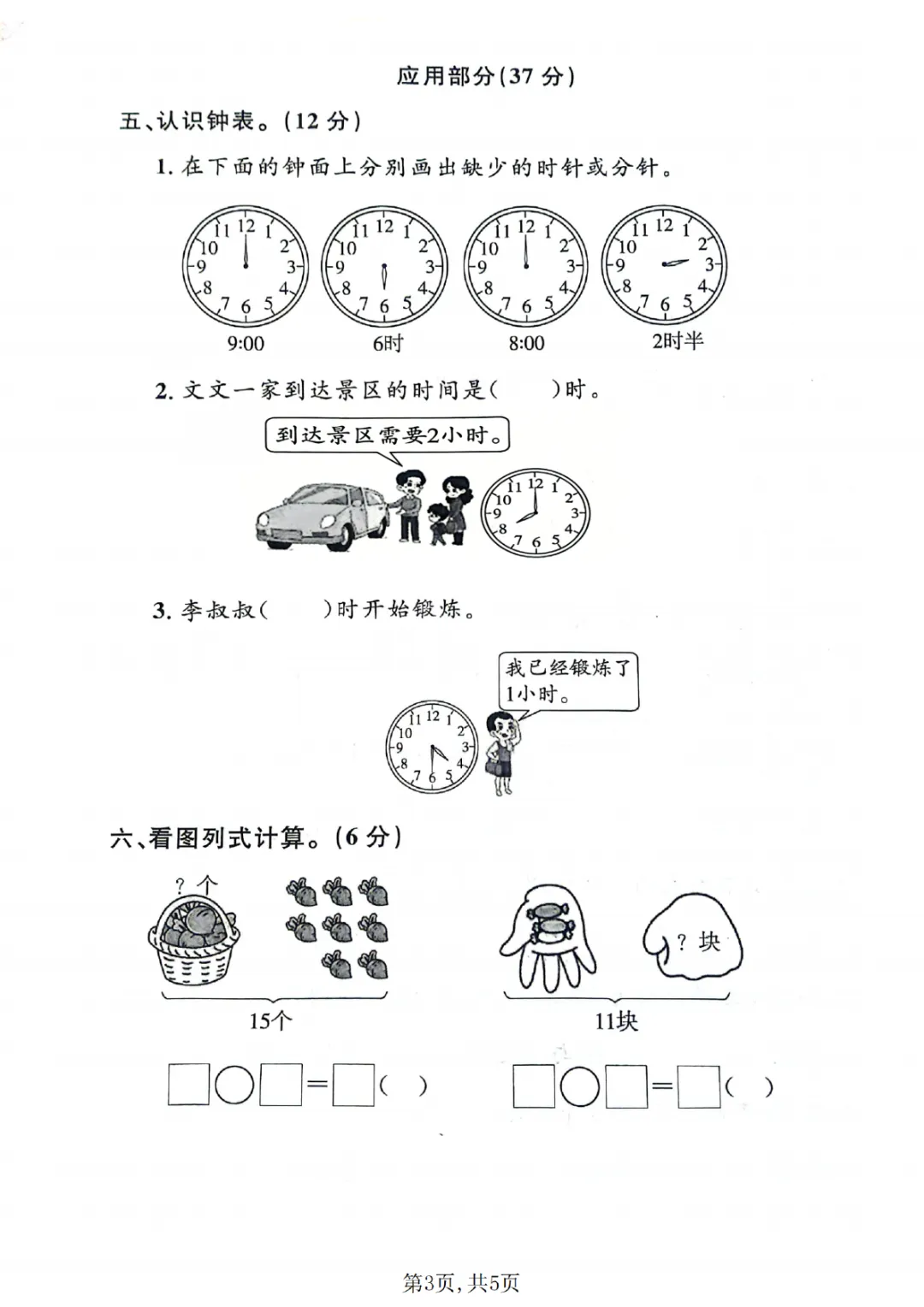 2026年一年级下册数学期中试卷(共5套)(电子版可打印)