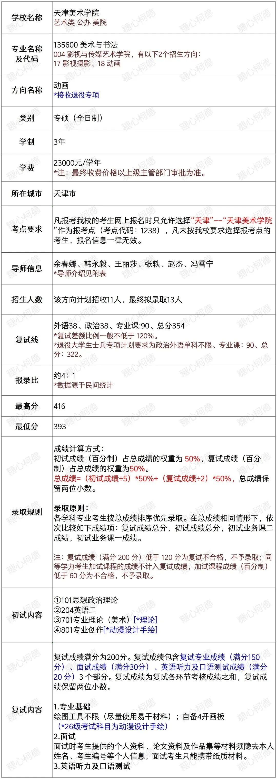2026级天津美术学院动画考研院校信息及真题