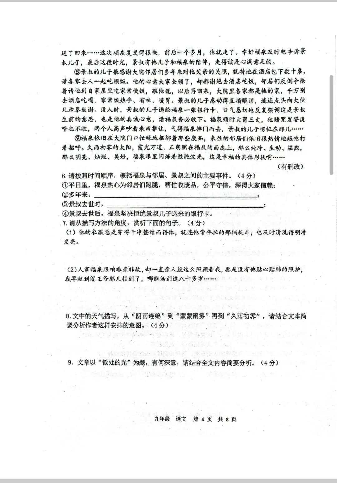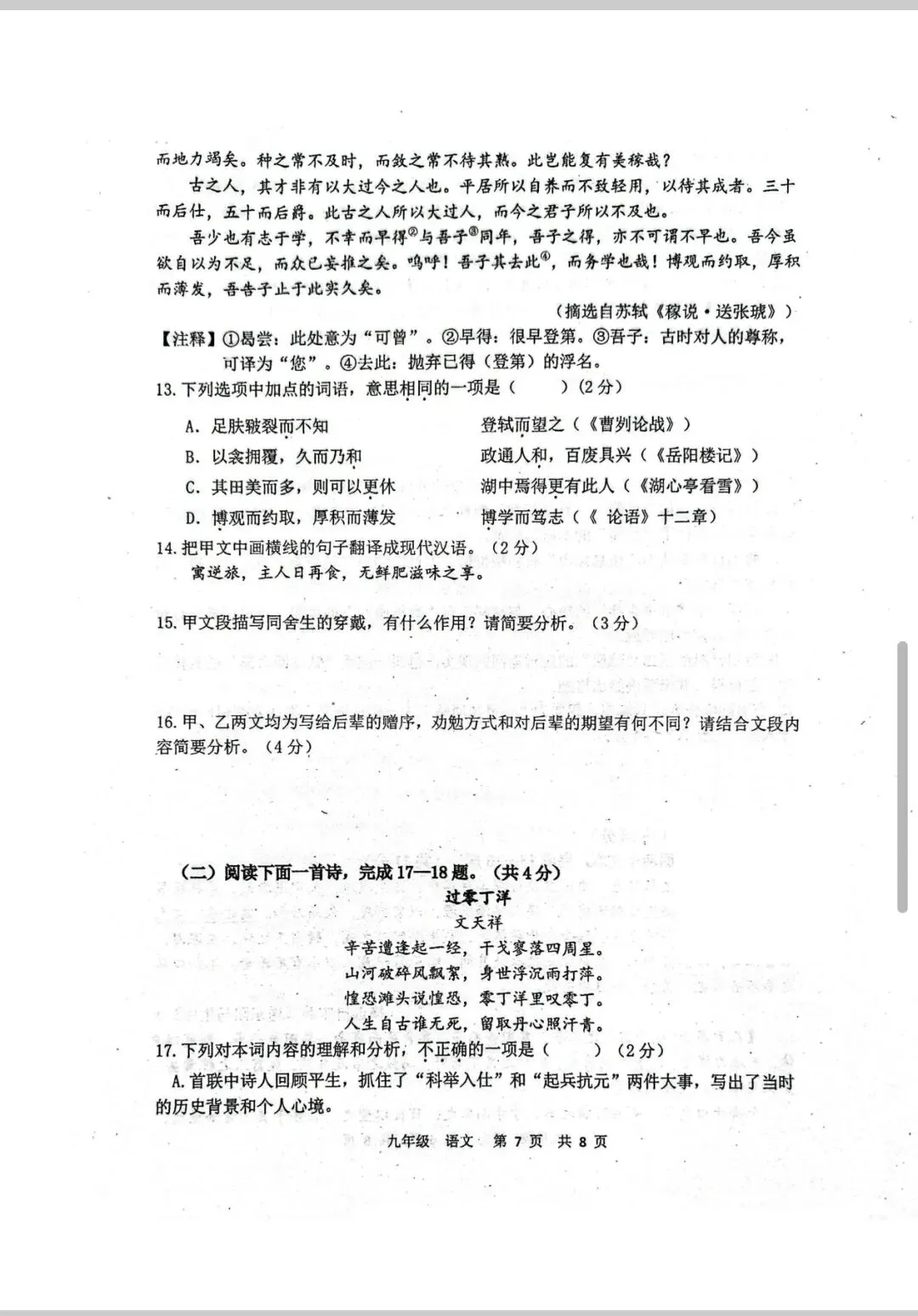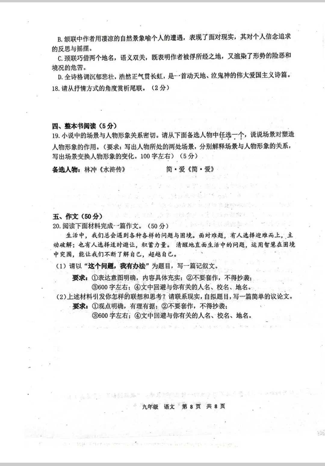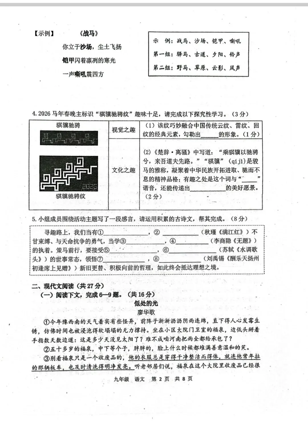 语文试卷:2026.4九年级阶段性练习语文试卷(含答案)